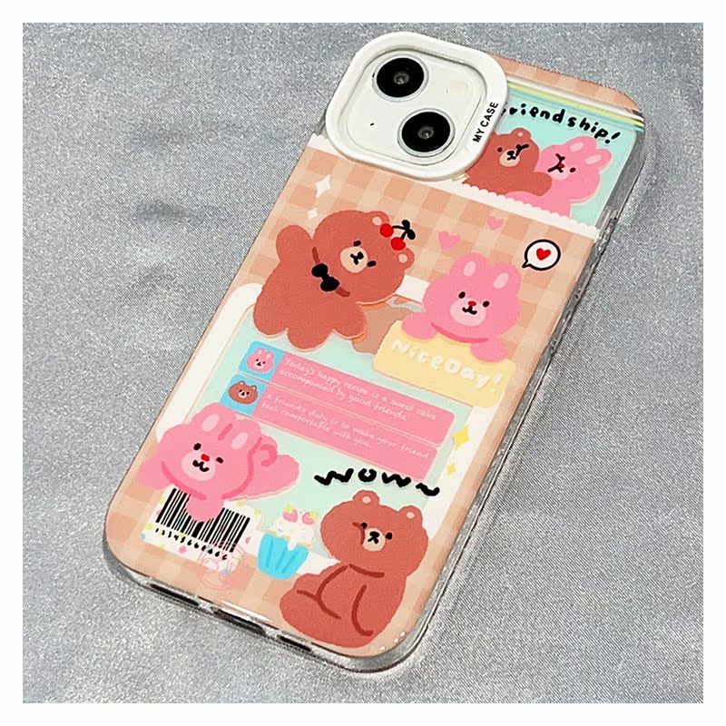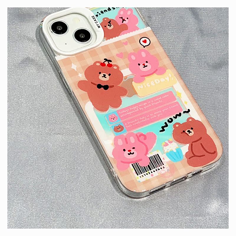 韓系可愛卡通小熊兔子適用蘋果14手機殼iPhone13ProMax新款15防摔12女款11硅膠14pro創意網紅趣味全包軟殼套