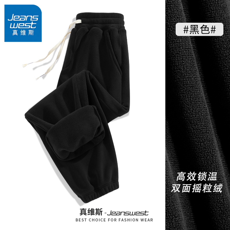 JR真維斯抓絨褲男款加厚雙面搖粒絨褲子男士加絨衛褲冬季保暖男褲