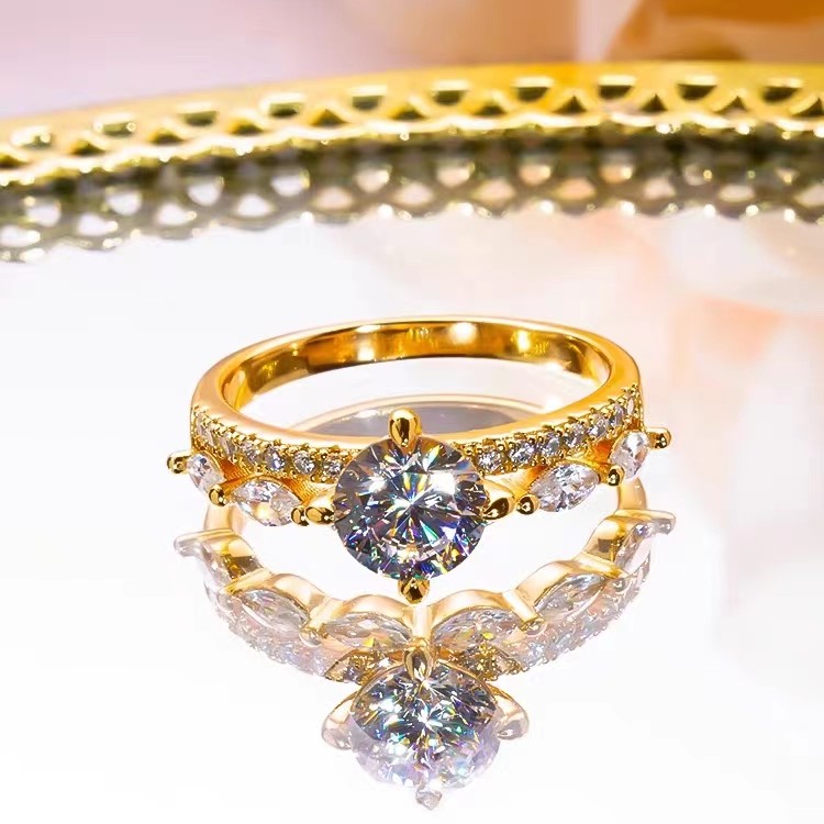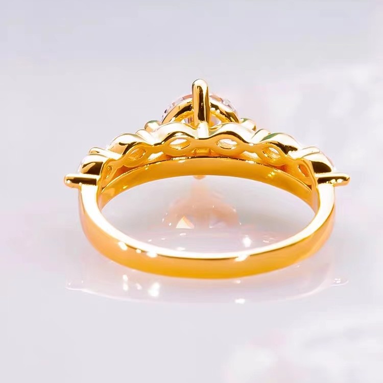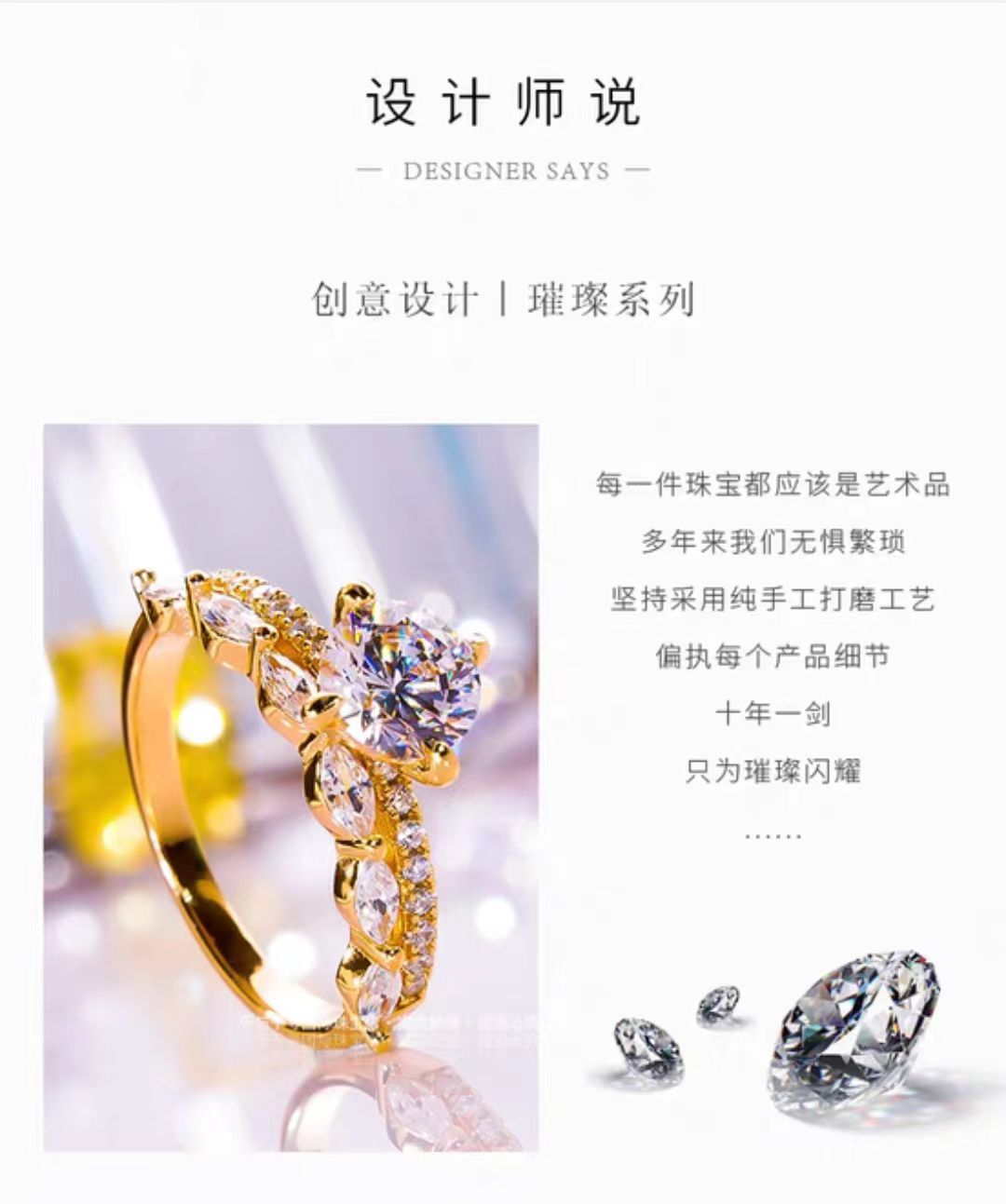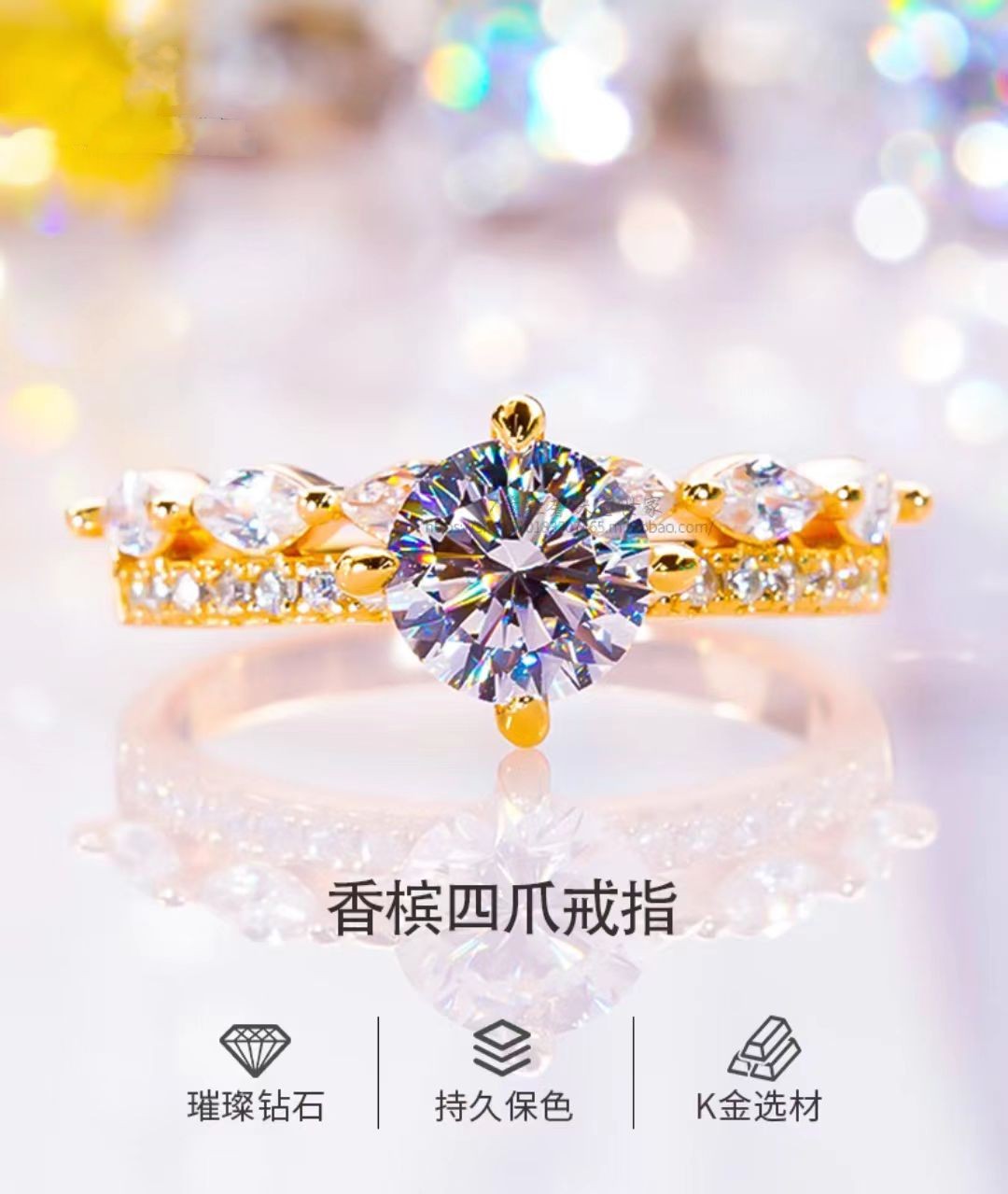 AU750純18K黃金鑲嵌美國進口D色莫桑石香檳四爪鉆戒奢華高級復古