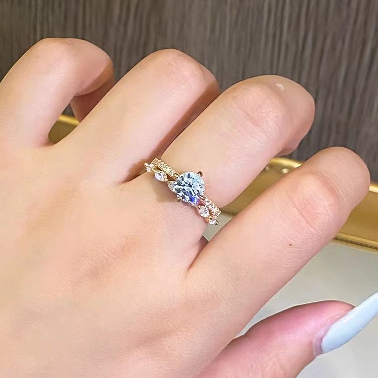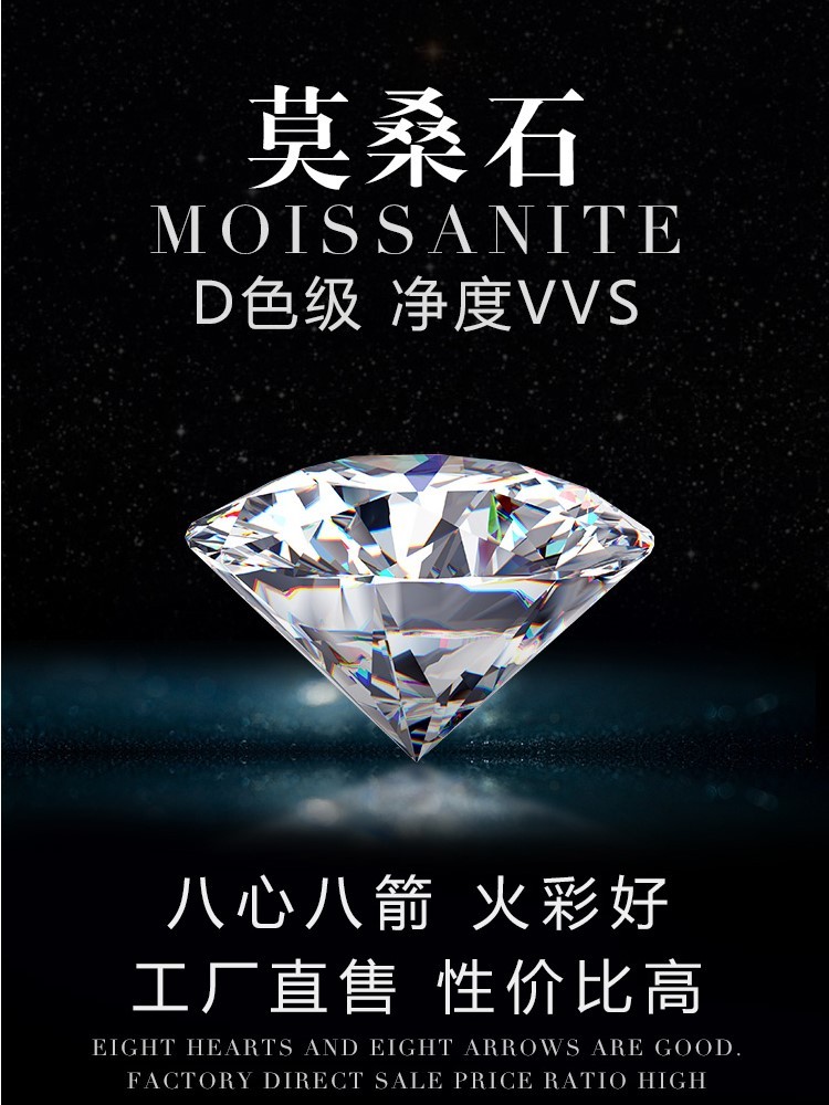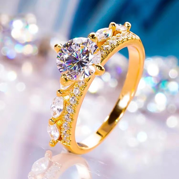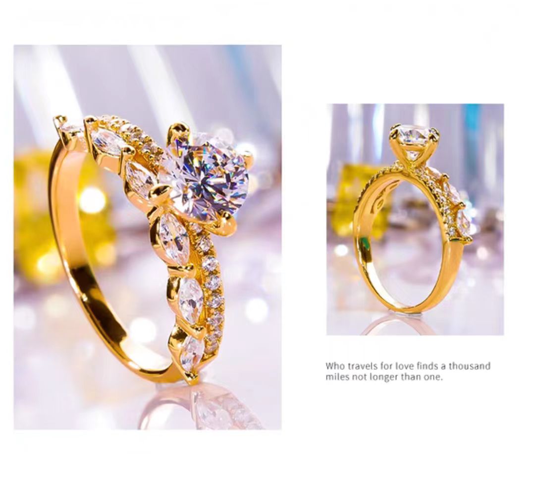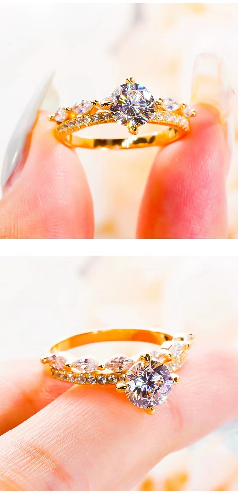 AU750純18K黃金鑲嵌美國進口D色莫桑石香檳四爪鉆戒奢華高級復古