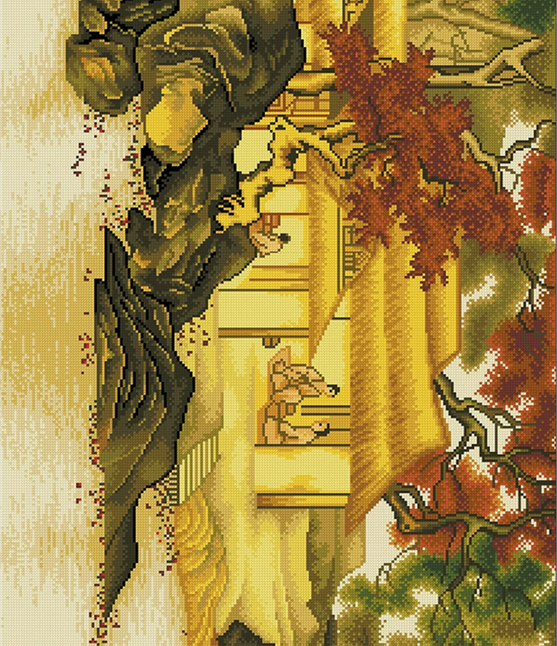 溪山漁隱圖十字繡2023年新款線繡客廳大幅經典水傳世名畫手工刺繡