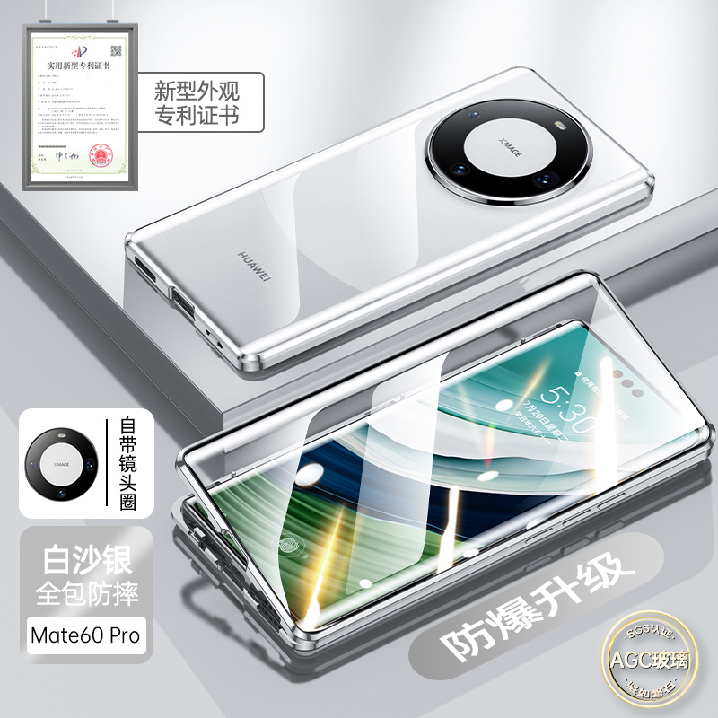 鏡頭全包防偷窺適用華為mate60pro手機殼新款MATE60磁吸雙面玻璃素皮防摔保護套PRO+透明魅特六十男女款薄5g