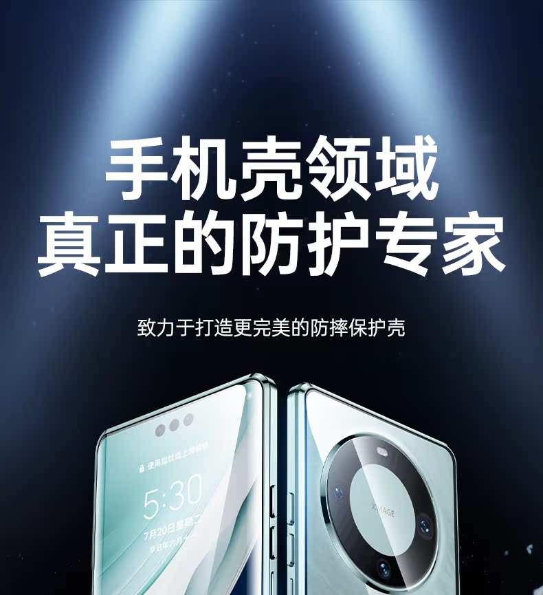 防偷窺鏡頭全包適用華為mate60pro手機殼mate60保護套+新品雙面玻璃磁吸翻蓋防摔5G透明卡扣男女款個性潮超薄