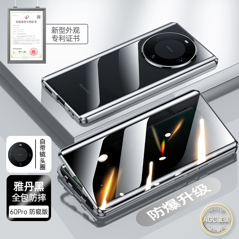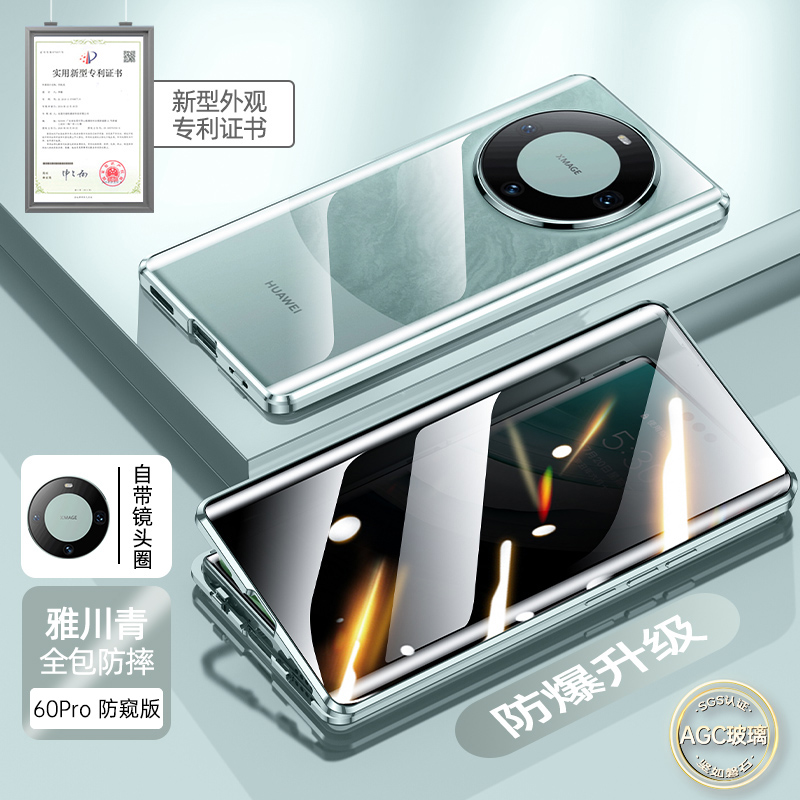防偷窺鏡頭全包適用華為mate60手機殼雙面玻璃透明超薄防摔新款保護套HUAWEImate60pro+防窺膜磁吸外殼高級感