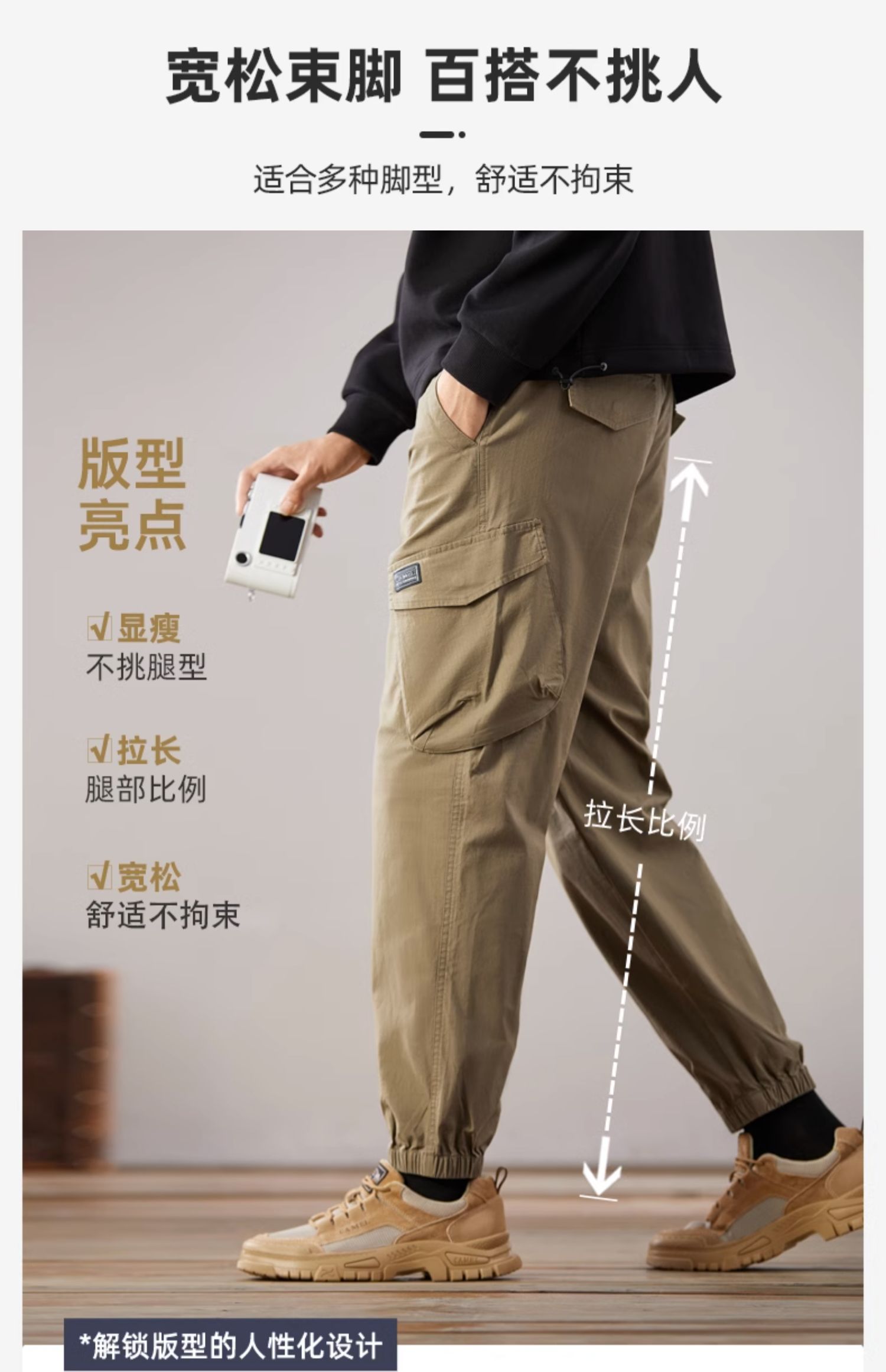 駱駝男裝工裝褲子男春秋季2023新款戶外寬松運動束腳百搭休閑長褲