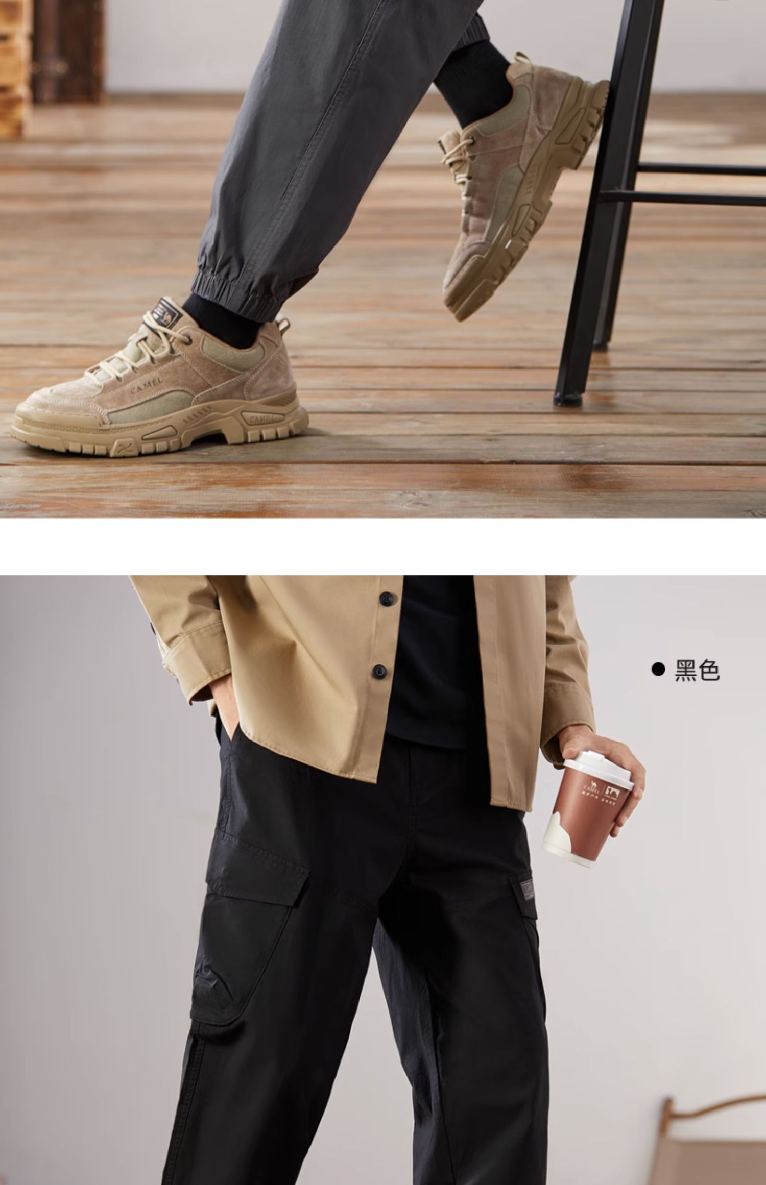 駱駝男裝工裝褲子男春秋季2023新款重磅寬松直筒運動戶外休閑褲子