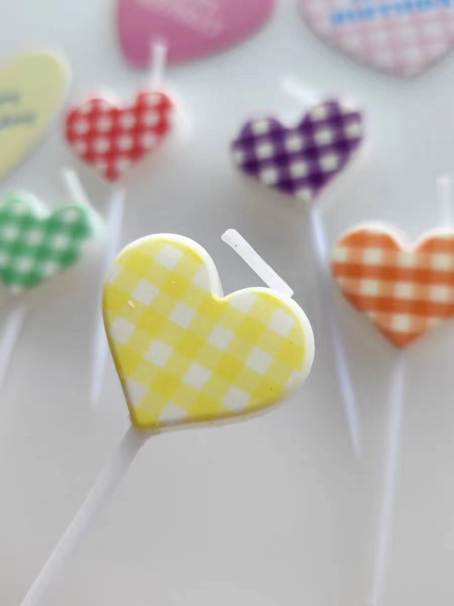 韓系ins情人節彩色格紋愛心蠟燭蛋糕裝飾心形告白生日蠟燭插件