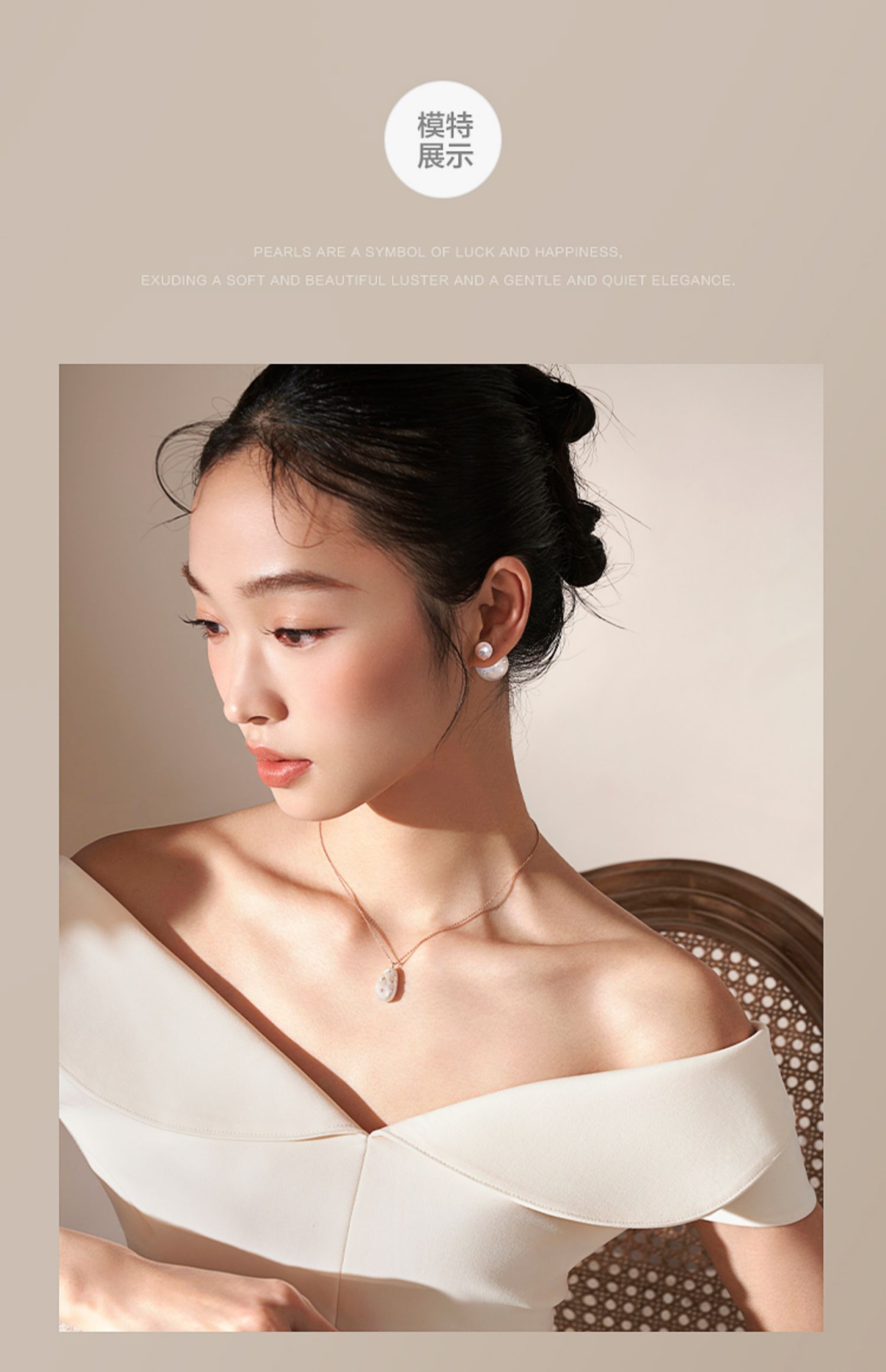 AJIDOU阿吉豆山茶花系列雙層疊戴花卉珍珠項鏈珍珠耳環百搭項鏈潮