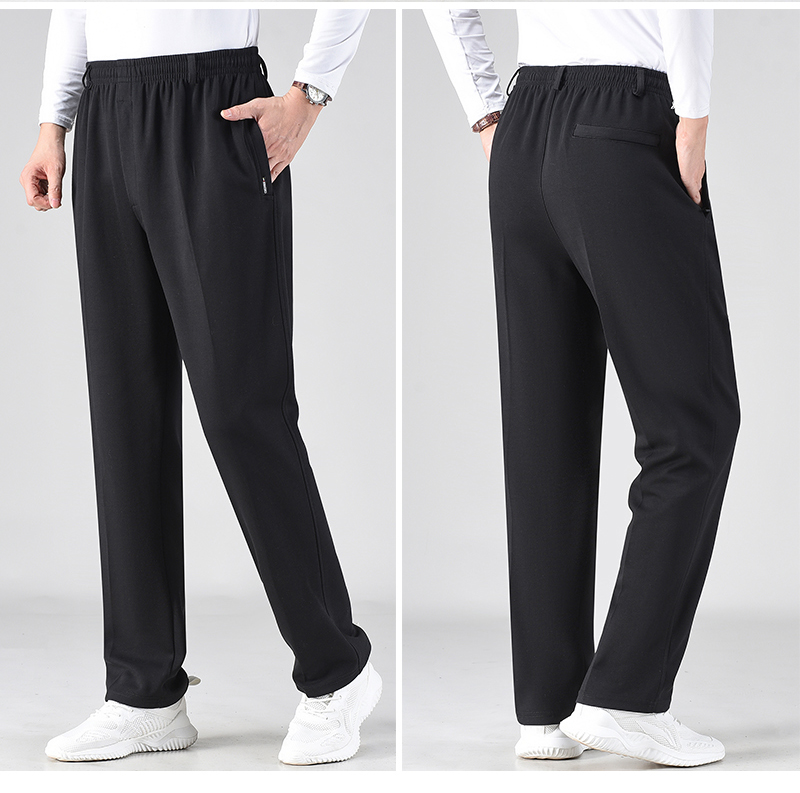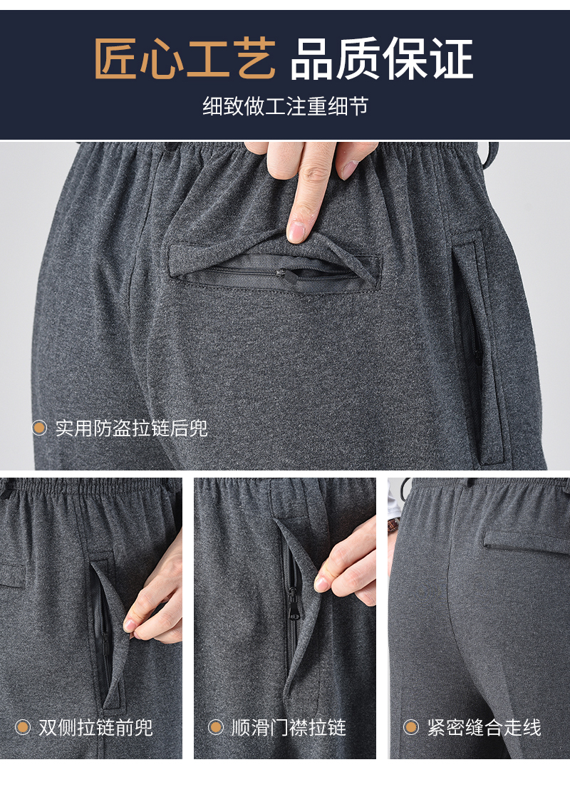 高腰深襠中老年開門襟休閑運動褲秋冬寬松加絨加厚松緊腰爸爸長褲