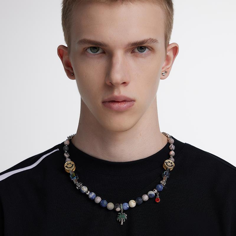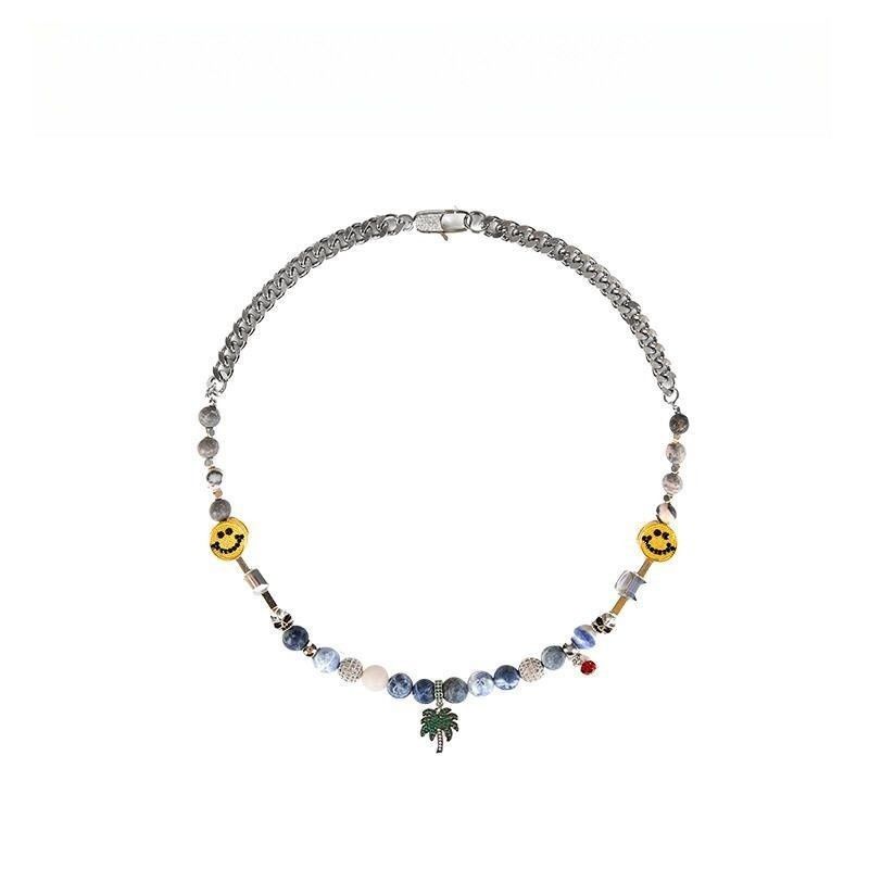玩物制造 T同款小眾原創設計椰樹笑臉項鏈情侶款嘻哈潮流鎖骨鏈