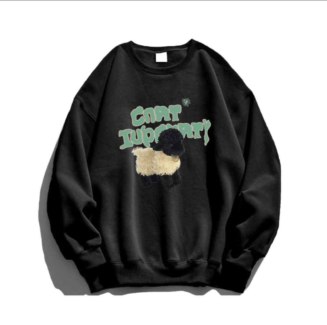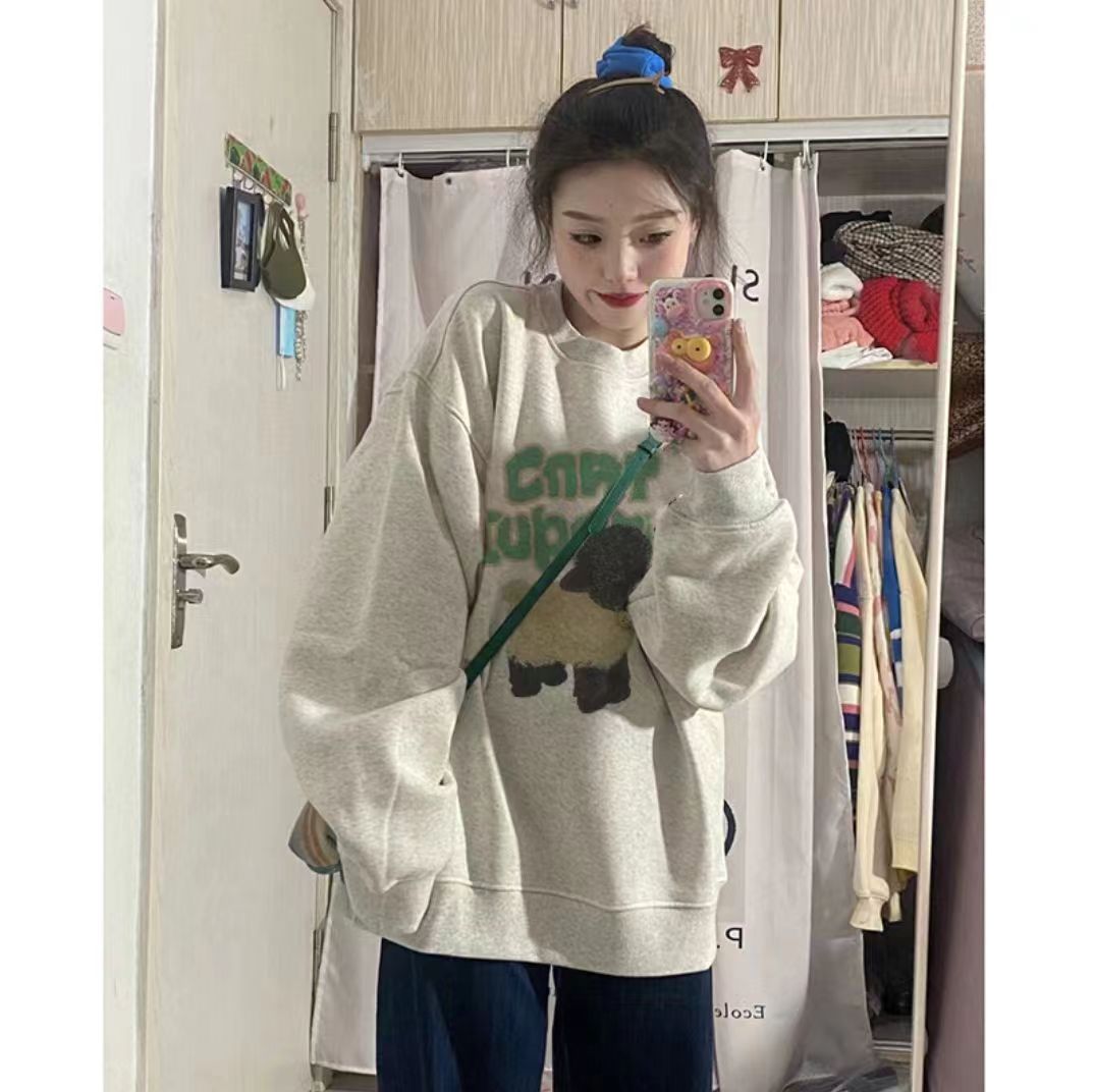 美式復古圓領衛衣女2023新款加絨加厚無帽長袖oversize慵懶風上衣