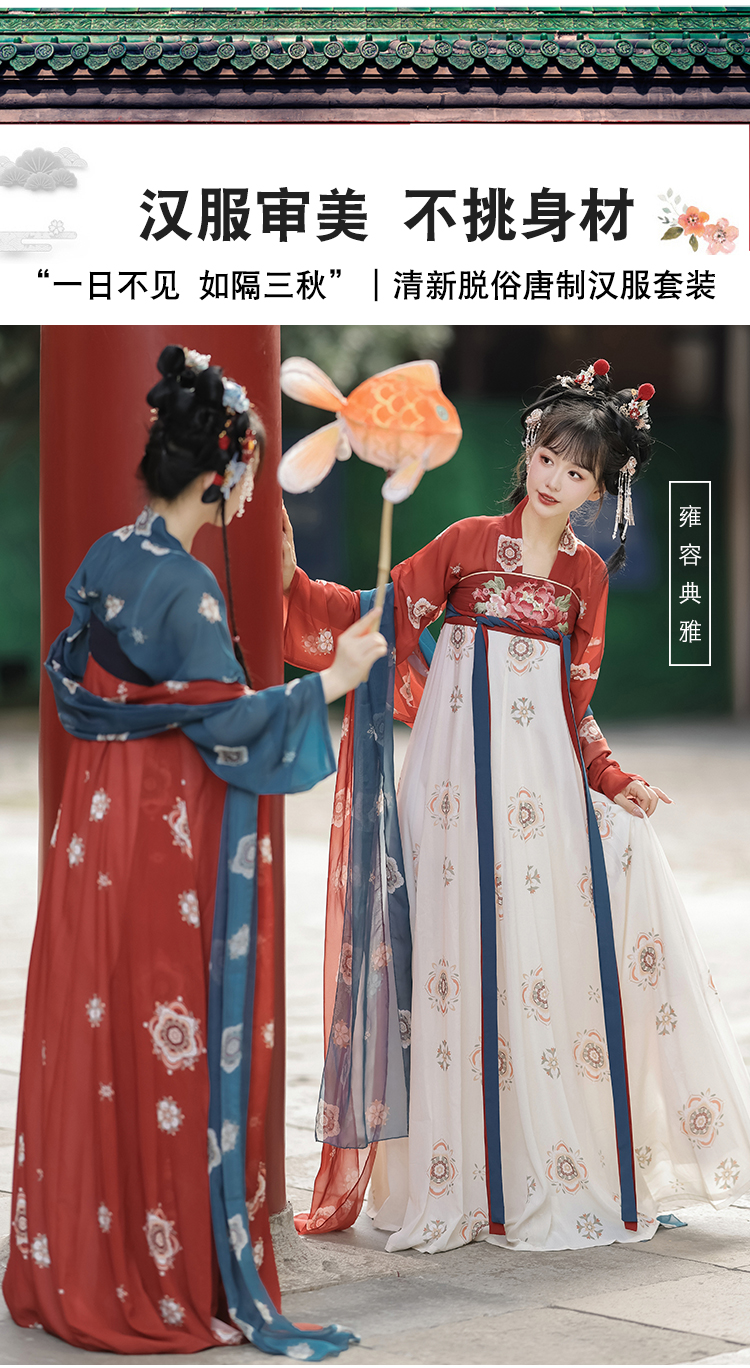原創新款唐制漢服女裝成人繡花齊胸襦裙復原款中國風春秋日常古裝