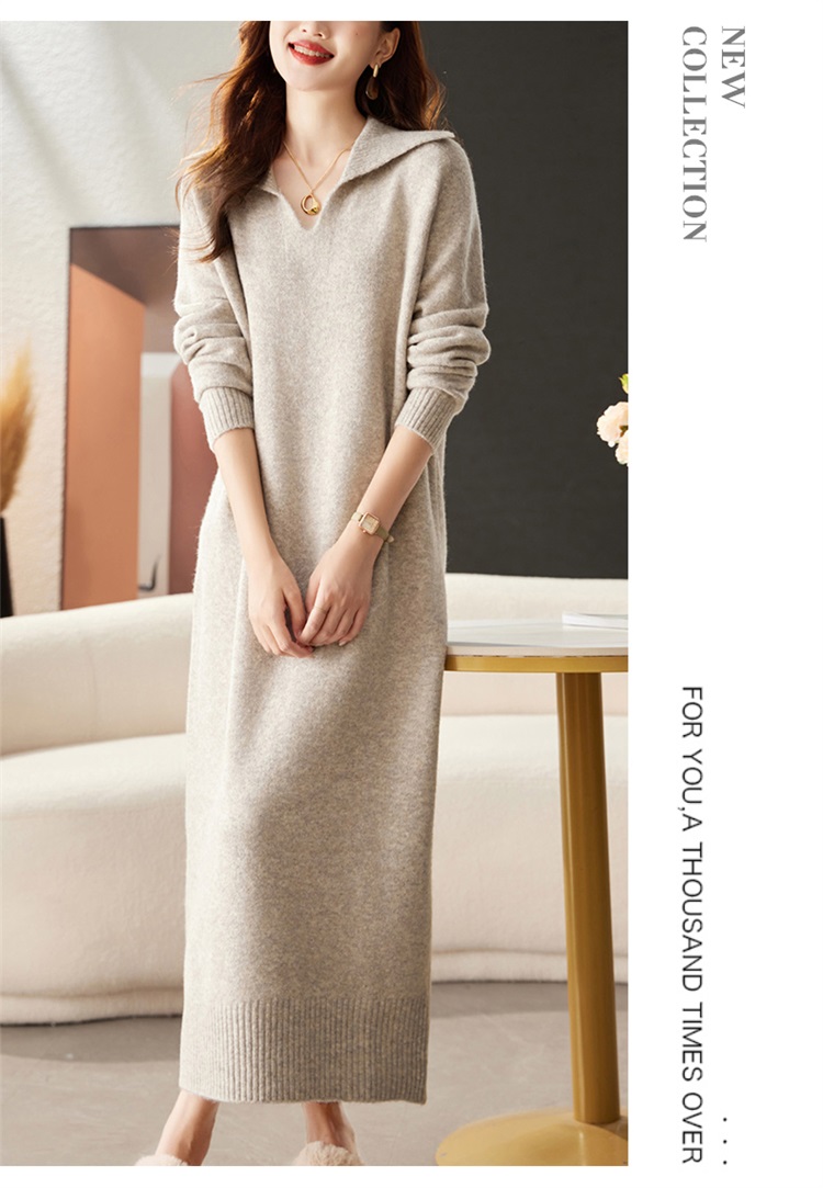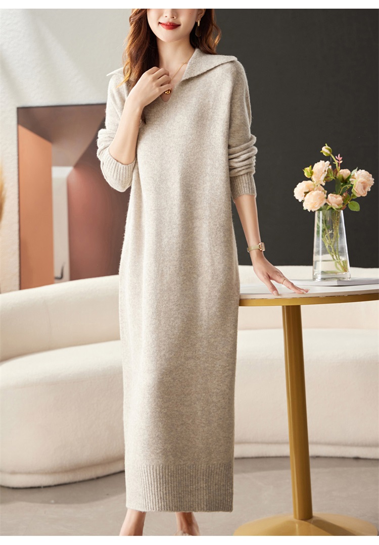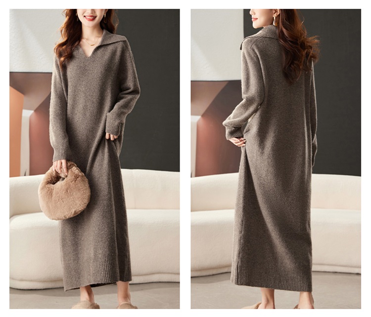 中長款羊毛針織連衣裙秋冬新款女士寬松內搭打底羊絨旗袍毛衣裙子