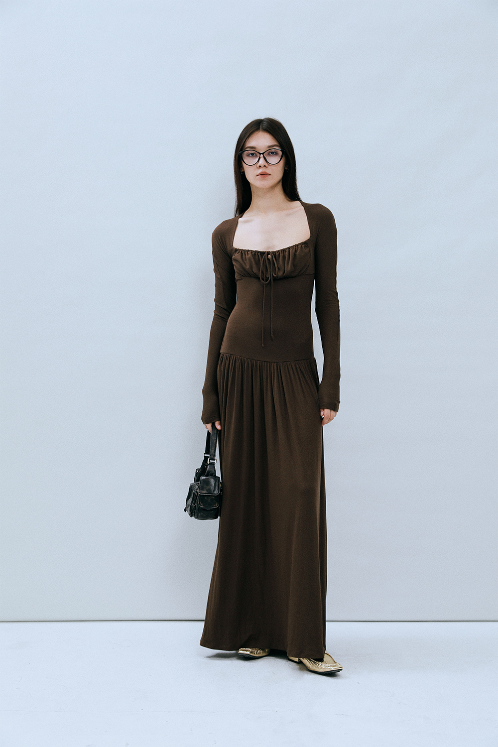殷三吉/THREE GOOOD魅惑佳人小眾設計優雅掛脖長袖連衣裙SQ230706