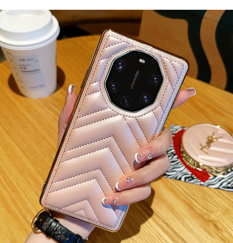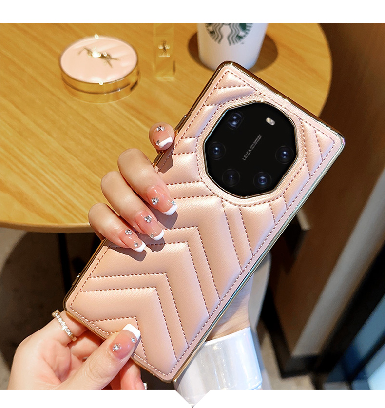適用于華為Mate60RS非凡大師手機殼新款高級感mate50rs防摔網紅創意簡約冰川粉女mate40rs電鍍金色軟皮革V紋