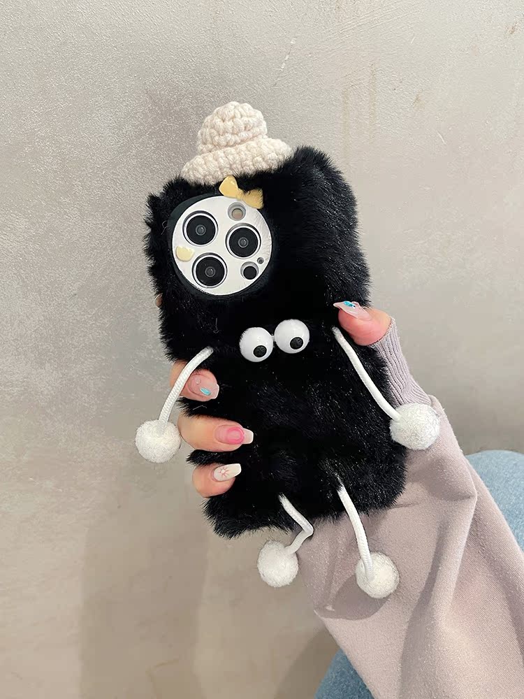 秋冬毛絨絨立體煤球適用蘋果15手機殼iphone14pro小眾高級感13promax暖手12新款2023女款11可愛max保護套plus