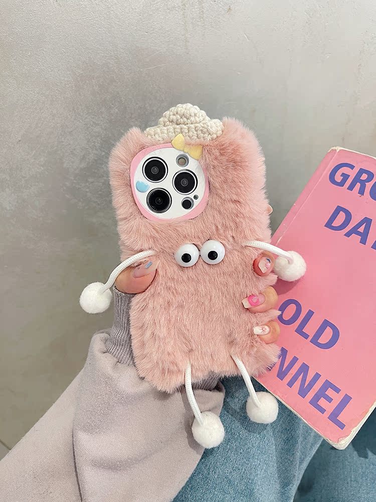 搞怪可愛辮子美人魚適用蘋果15promax手機殼iphone14pro秋冬毛絨13新款12小眾高級感11防摔max保護套plus暖手