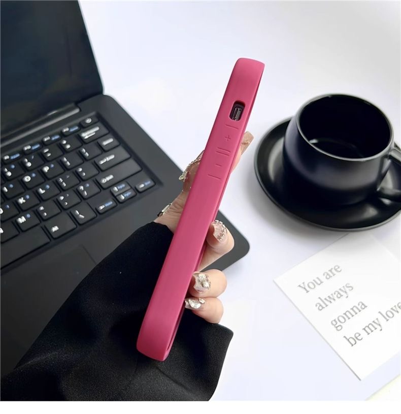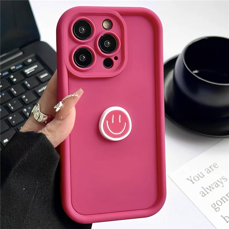 ins卡通可愛笑臉高級感玫紅適用蘋果14Prom手機殼iPhone13max新款14磨砂膚感11男女12情侶13pro硅膠xr/xs防摔