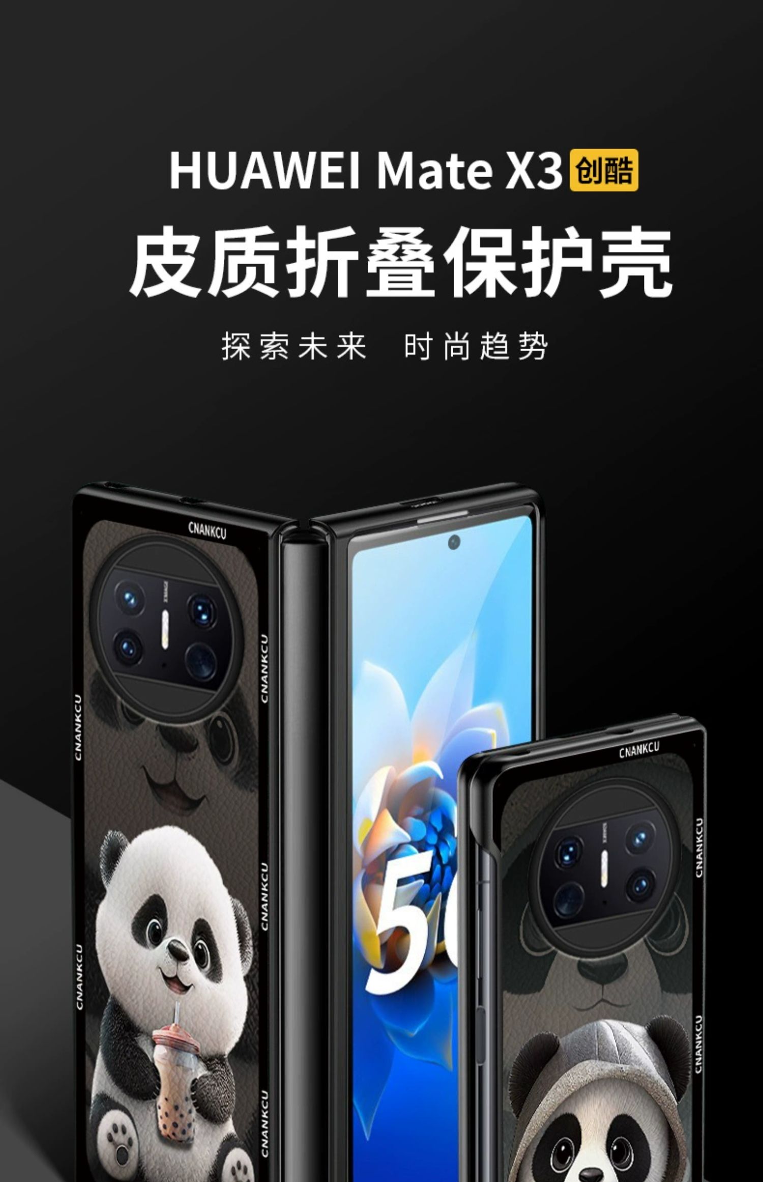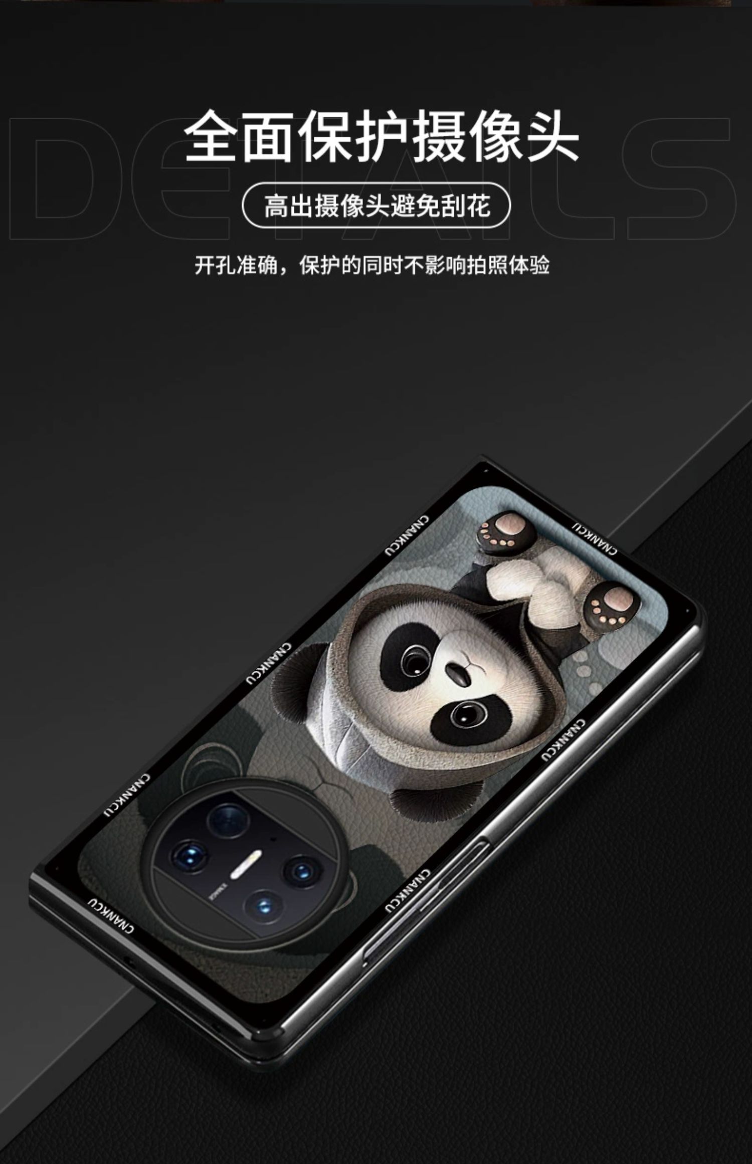 適用于華為matex3手機殼可愛卡通熊貓魅特x5典藏版折疊屏保護套超薄膚感硬殼x2全包防摔創意油畫風潮男女新款