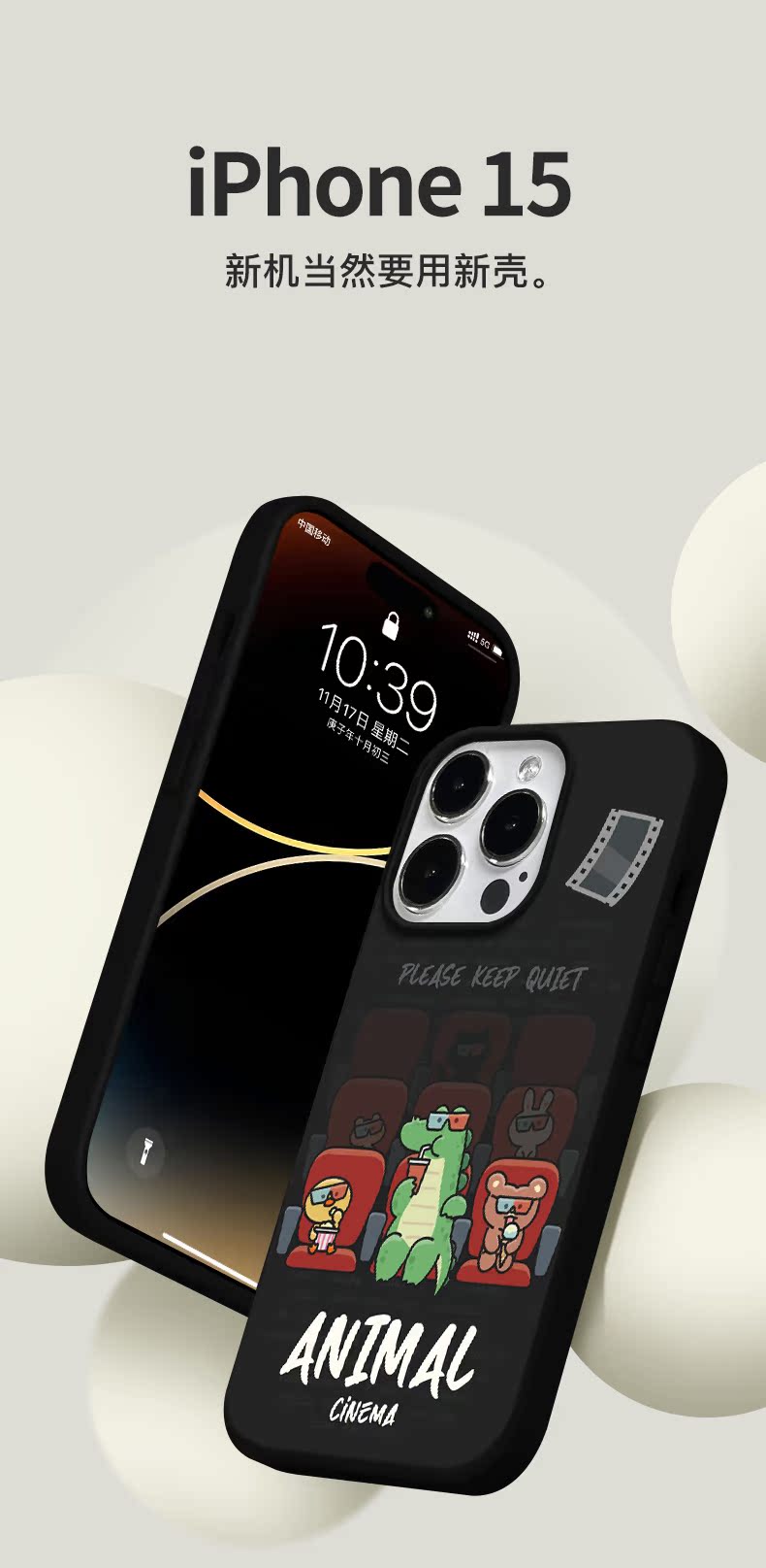 甲方適用于新款蘋果15卡通手機殼14promax保護套iPhone15pro創意動物影院15promax硅膠大孔防摔11小眾14pro