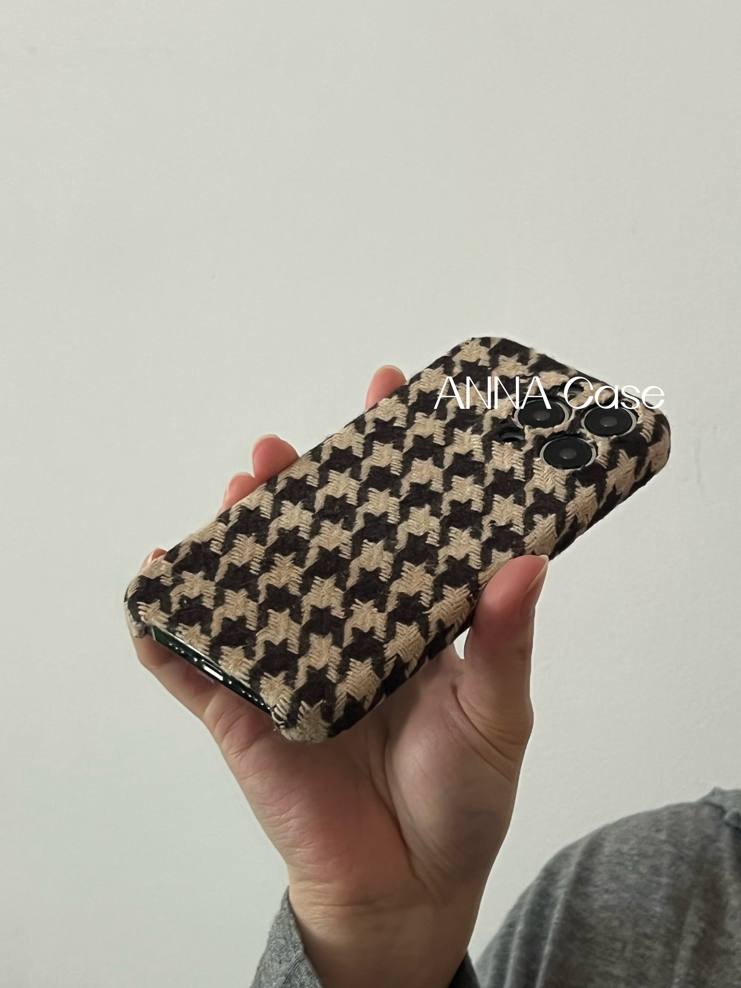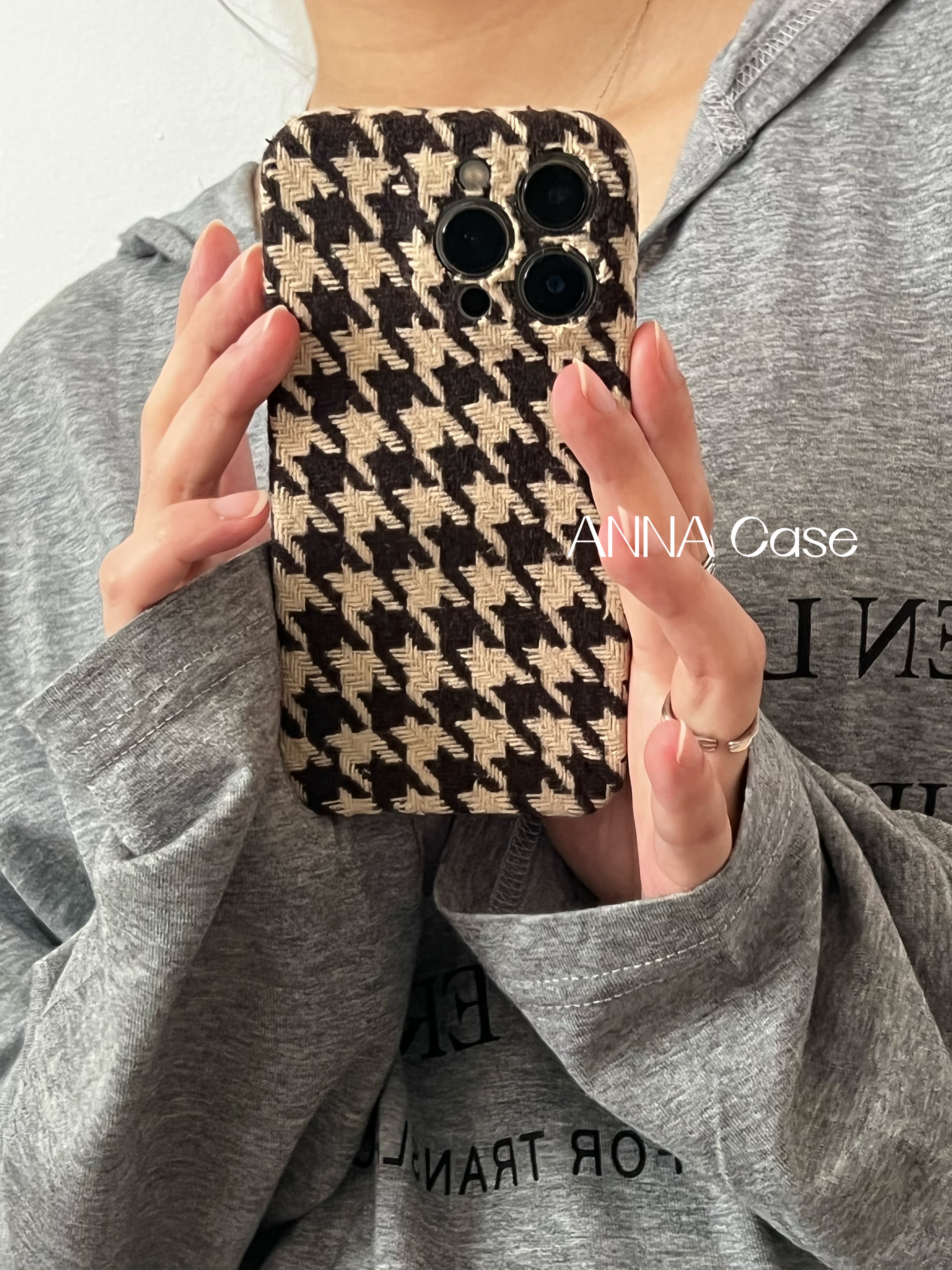 ANNACASE秋冬小眾ins棕色千鳥格絨布適用蘋果14/15promax手機殼iphone13/12pro新款11少女13promax防摔保護套