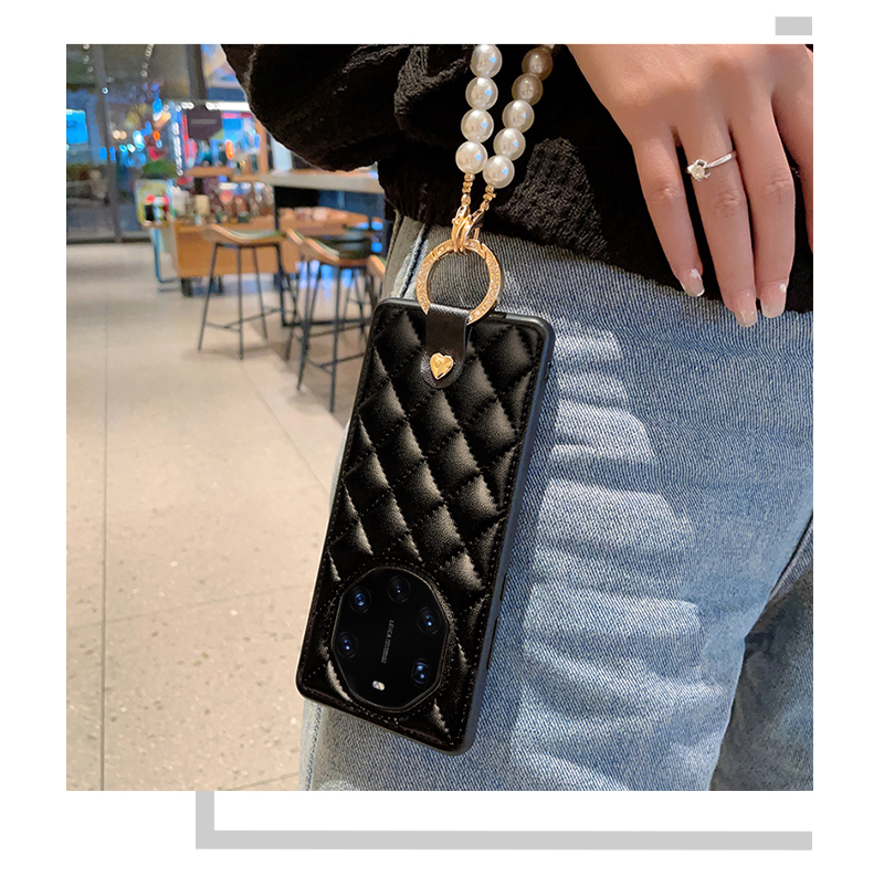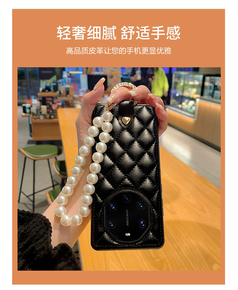 適用華為mate60rs手機殼珍珠手鏈腕帶款mate40rs高檔菱格保護套Mate60RS非凡大師簡約時尚mate60rs硬殼小香風