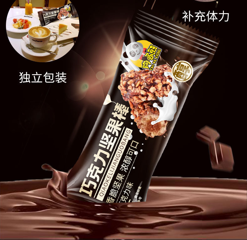 巧禾花生棒巧克力堅果棒果仁夾心米果能量棒休閑膨化小零食整箱信