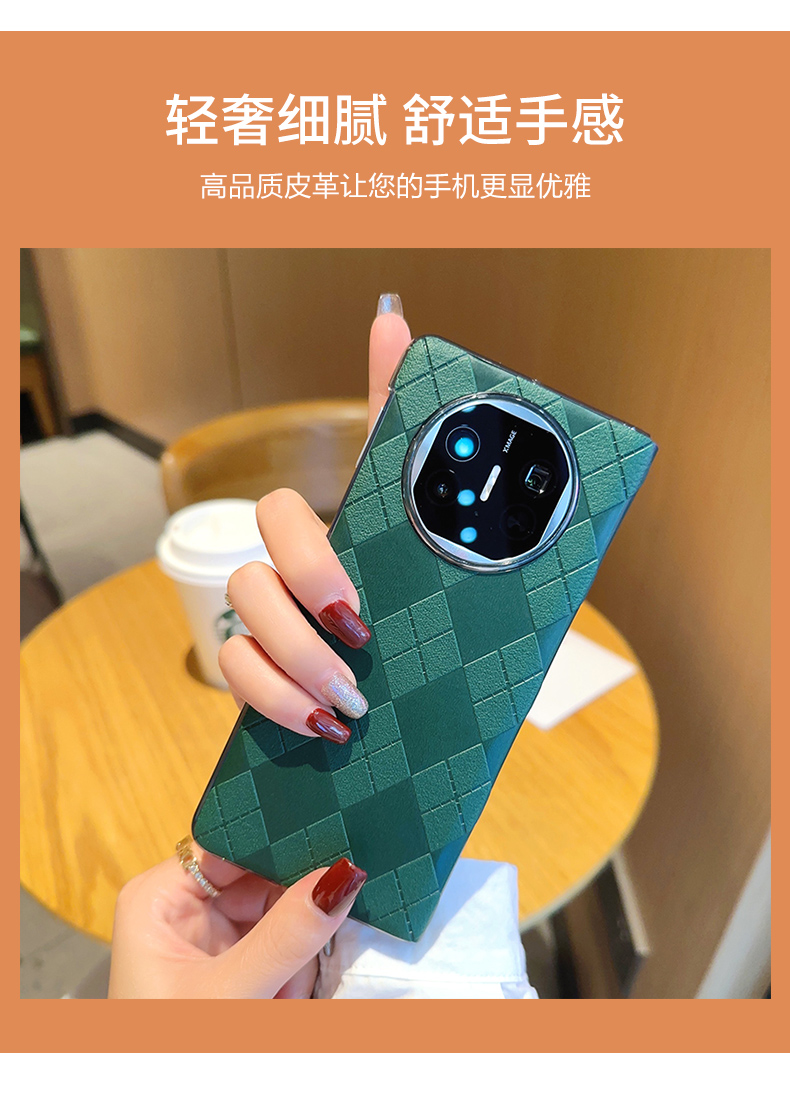 適用于華為MateX5手機殼高級感大氣商務翻蓋綠色菱格皮質硬殼matex5典藏版新款超薄防摔全包式保護套男女新款