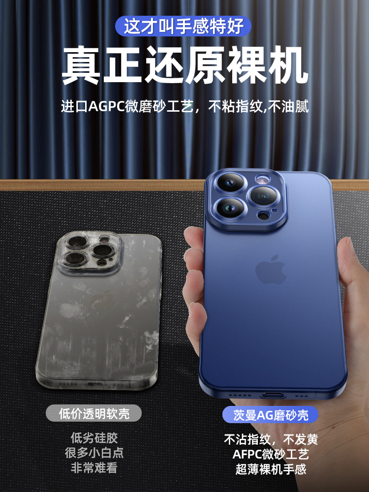 【裸機超薄磨砂】新機藍蘋果15手機殼蘋果14新款iphone15promax高級感13套12防摔15Ultra全包ProMax女適用Pro