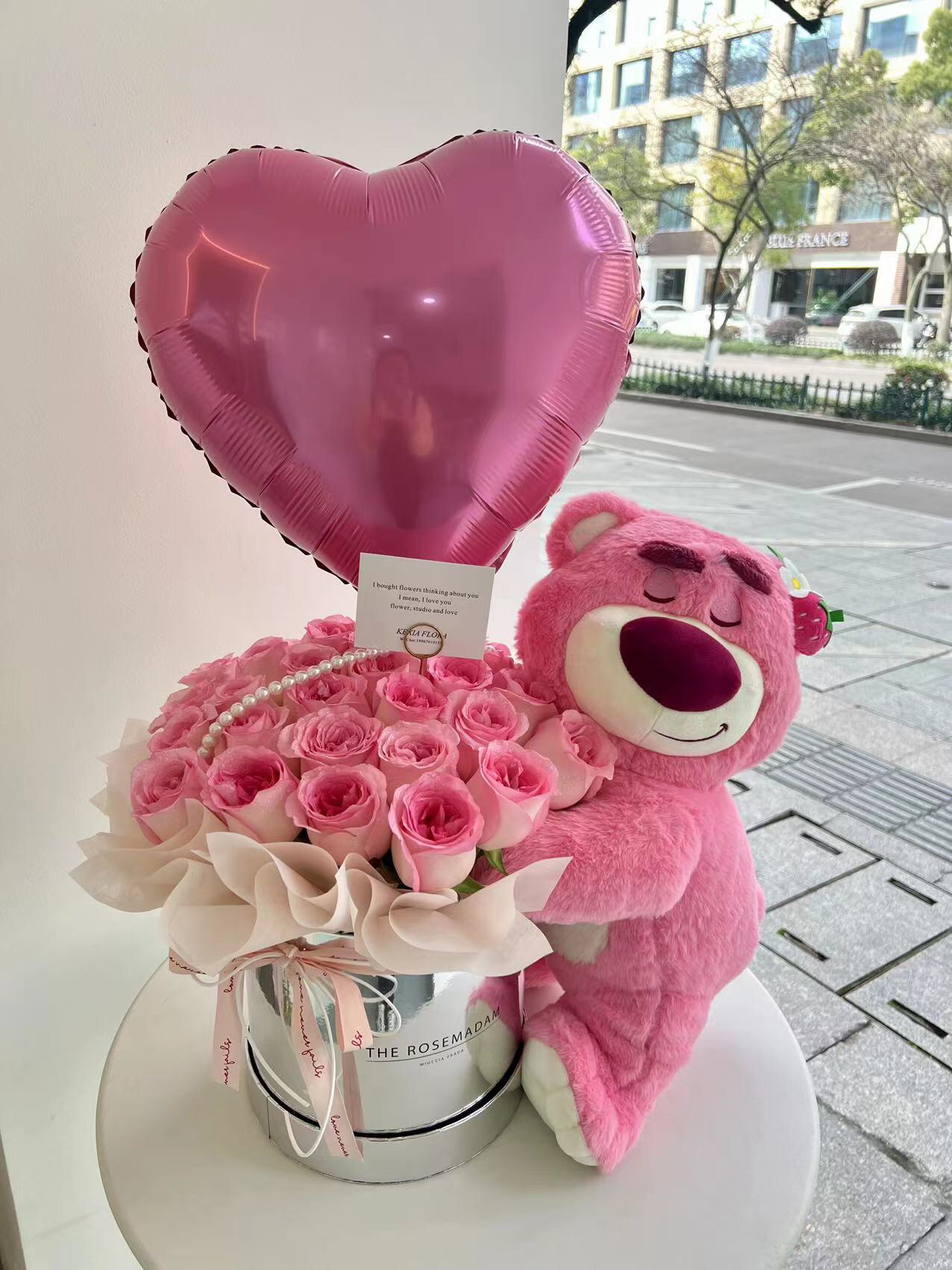 全國草莓熊玫瑰花束氣球抱抱桶鮮花速遞同城配送生日上海廣州北京
