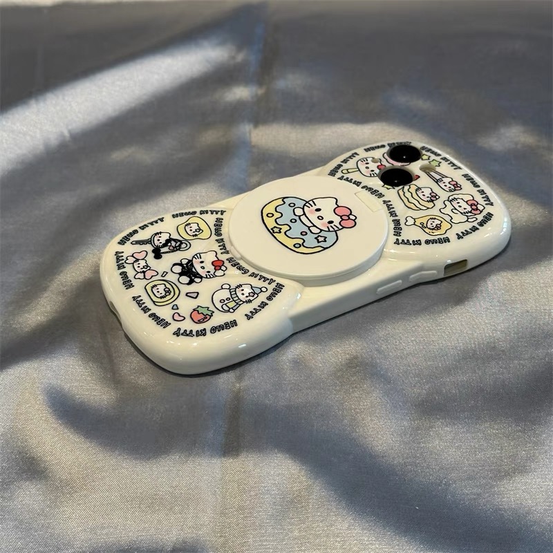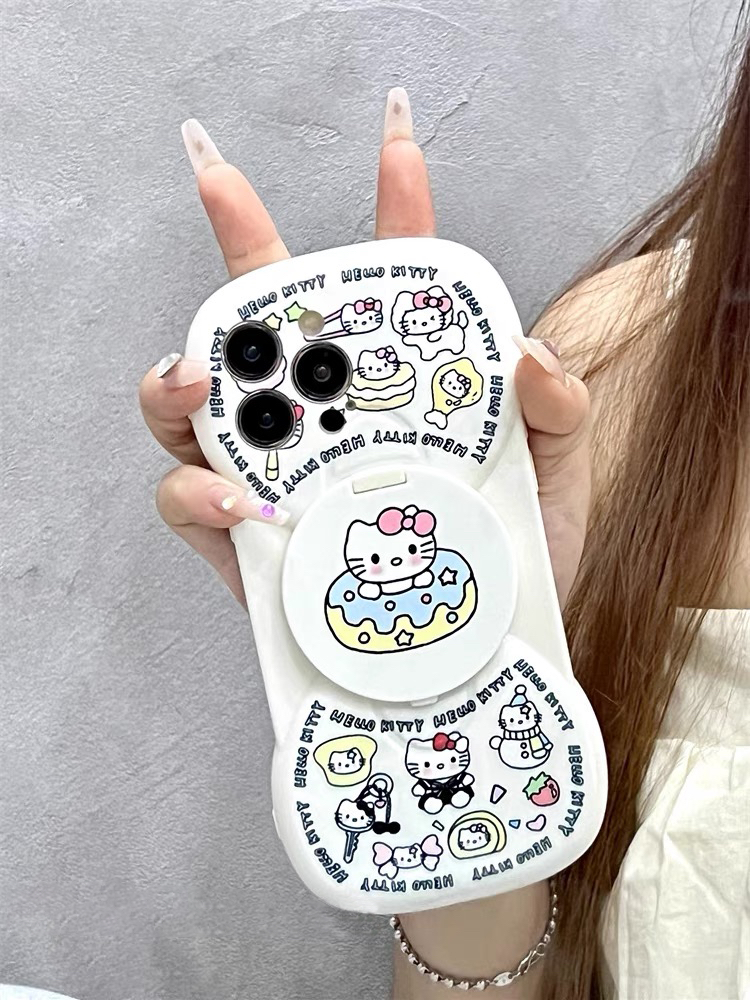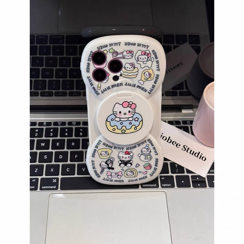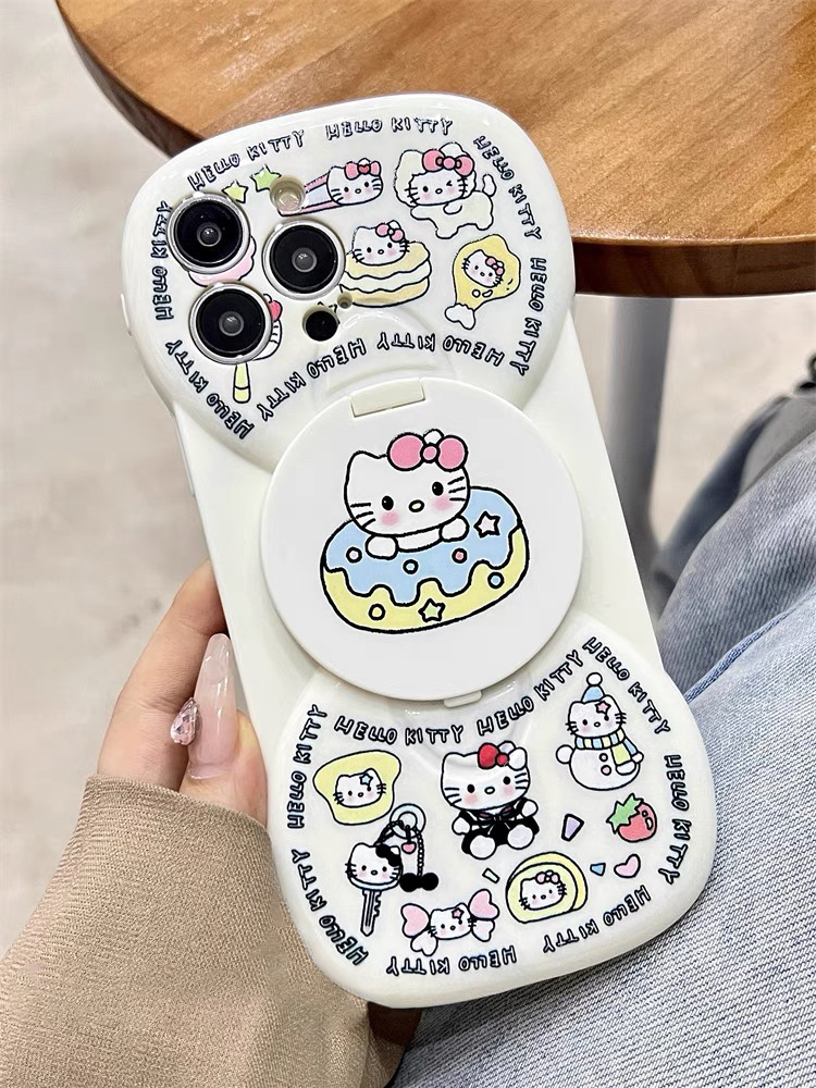 適用蘋果iPhone15promax卡通13pro蝴蝶結鏡子支架奶油Kitty貓手機殼12promax防摔iPhone11女款高級感14保護套