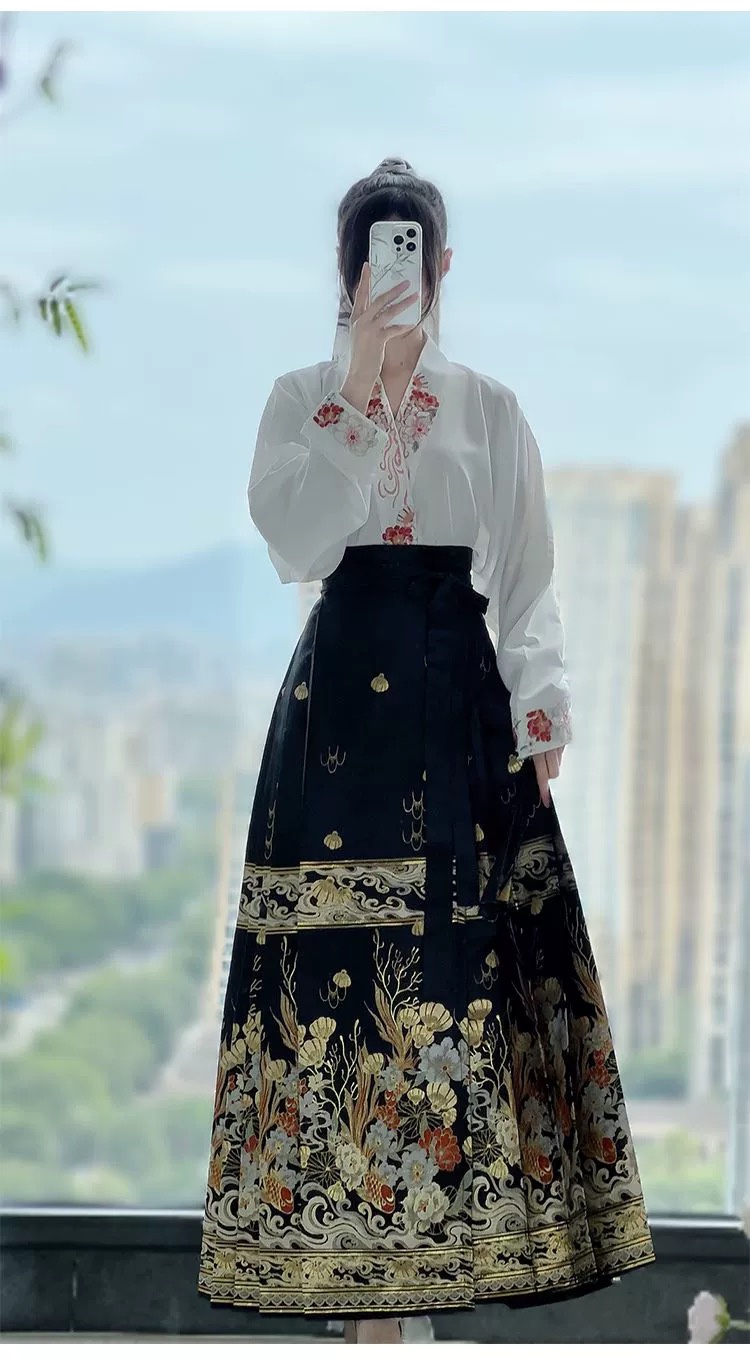序繪原創明制漢服[觀山亭]改良襯衣新中式螺鈿黑馬面裙女夏款日常