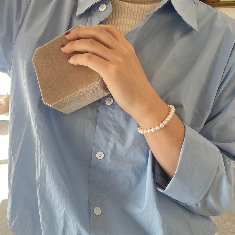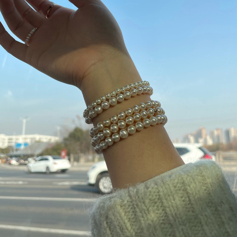 巴黎【設計師純手作】奧地利進口施家珍珠·彈力繩手鏈簡約百搭