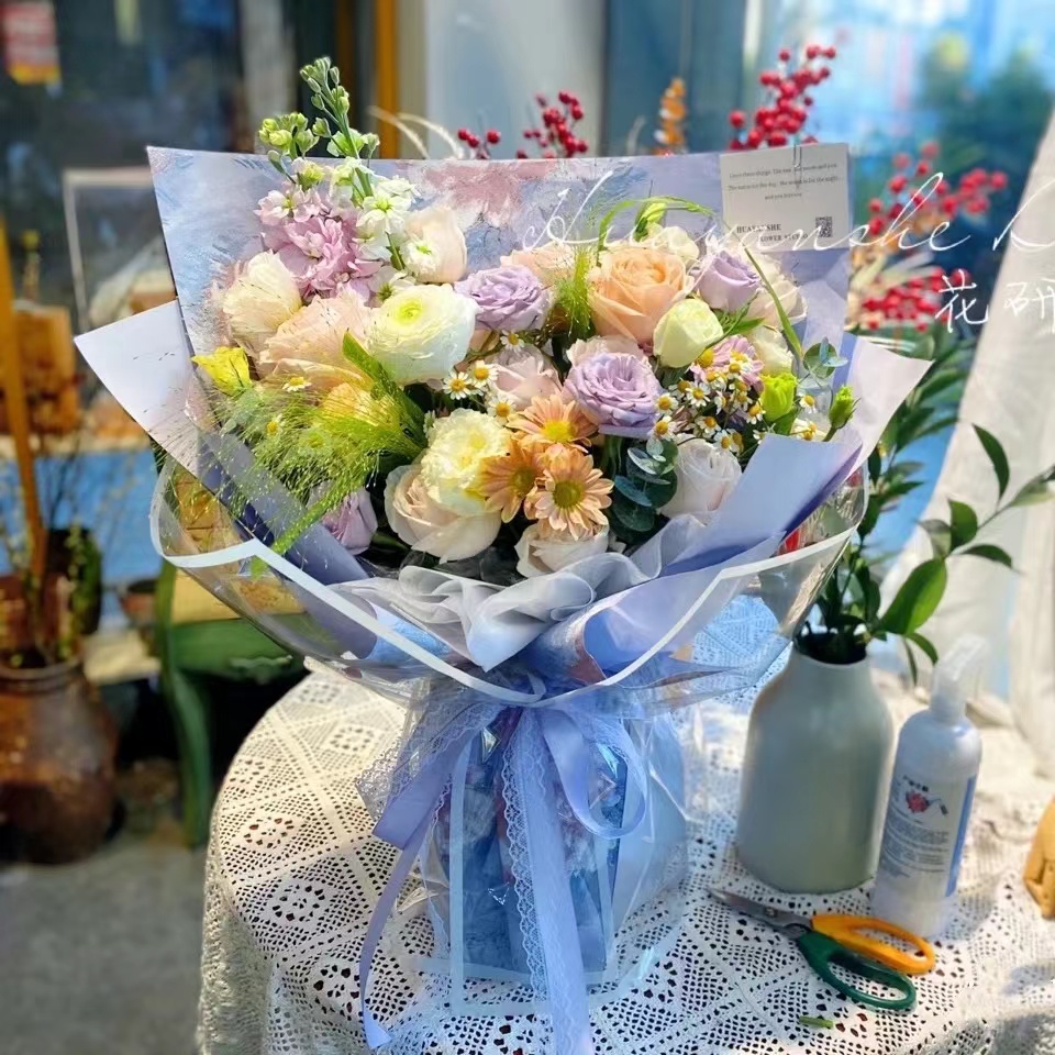 深圳同城鮮花速遞芍藥香檳玫瑰繡球桔梗生日祝福花束花店送花上門