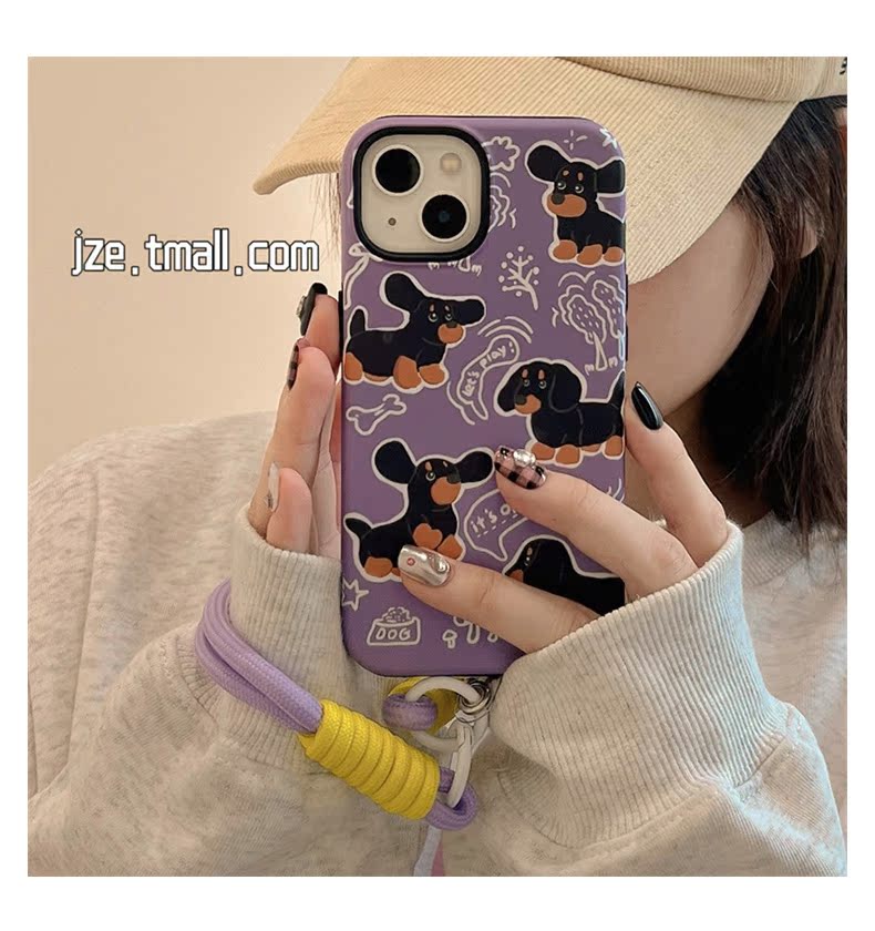 韓系可愛卡通臘腸狗適用蘋果14帶掛繩手機殼iPhone13ProMax新款15pro防摔12女款11全包14pro二合一小眾男網紅