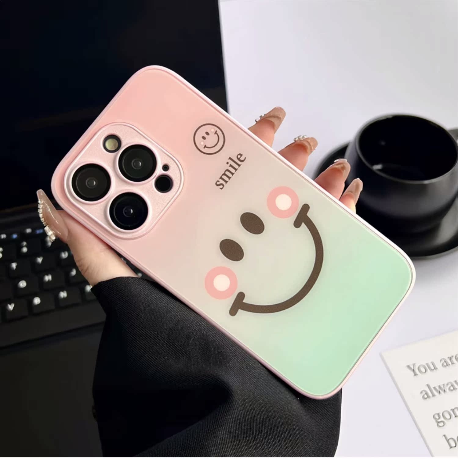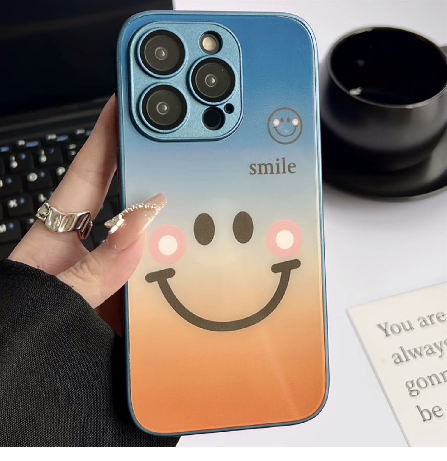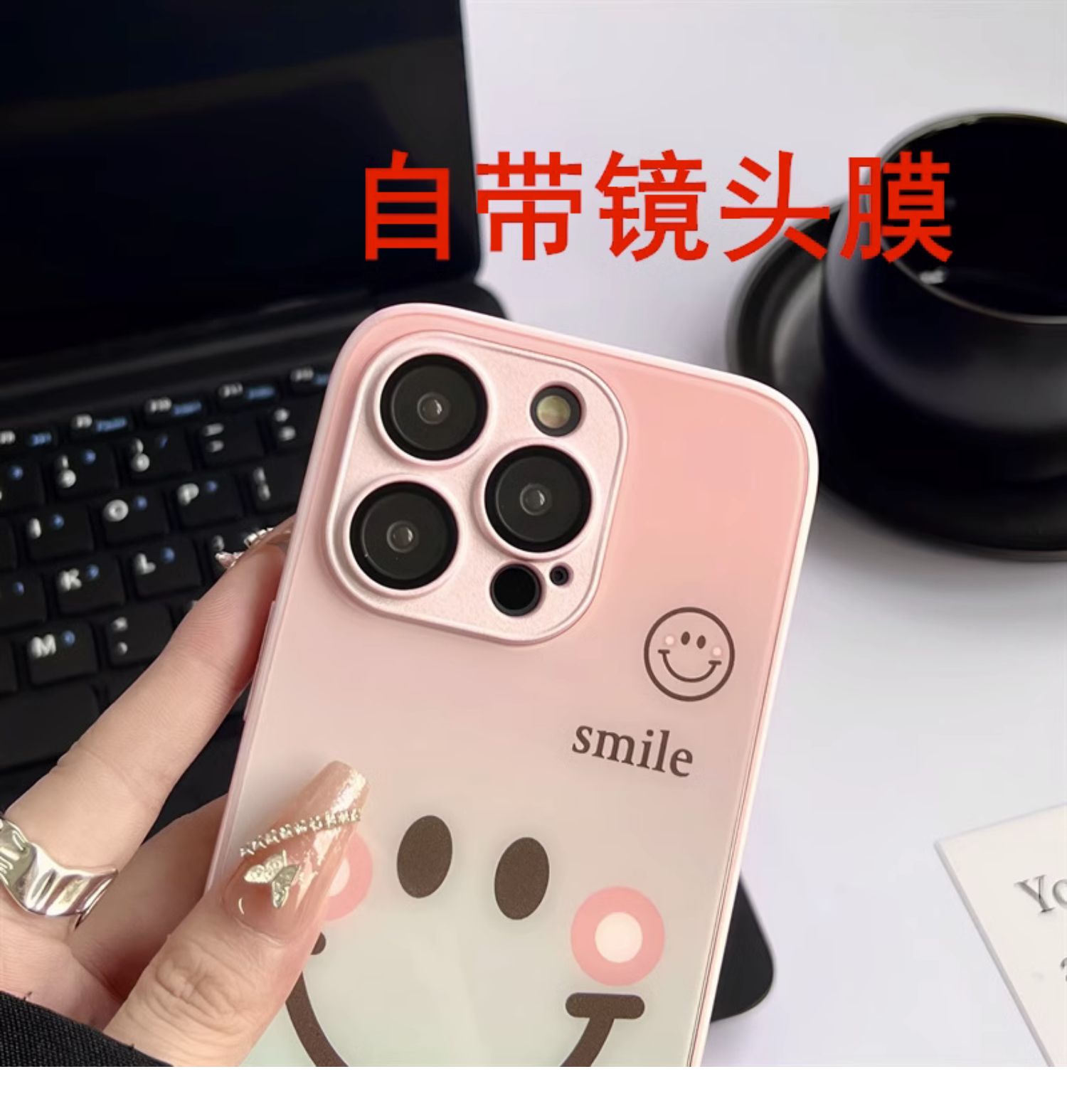 漸變撞色笑臉適用iphone15pro蘋果14手機殼11撞色12pro小眾13promax自帶鏡頭膜全包防摔玻璃保護套女款高級感