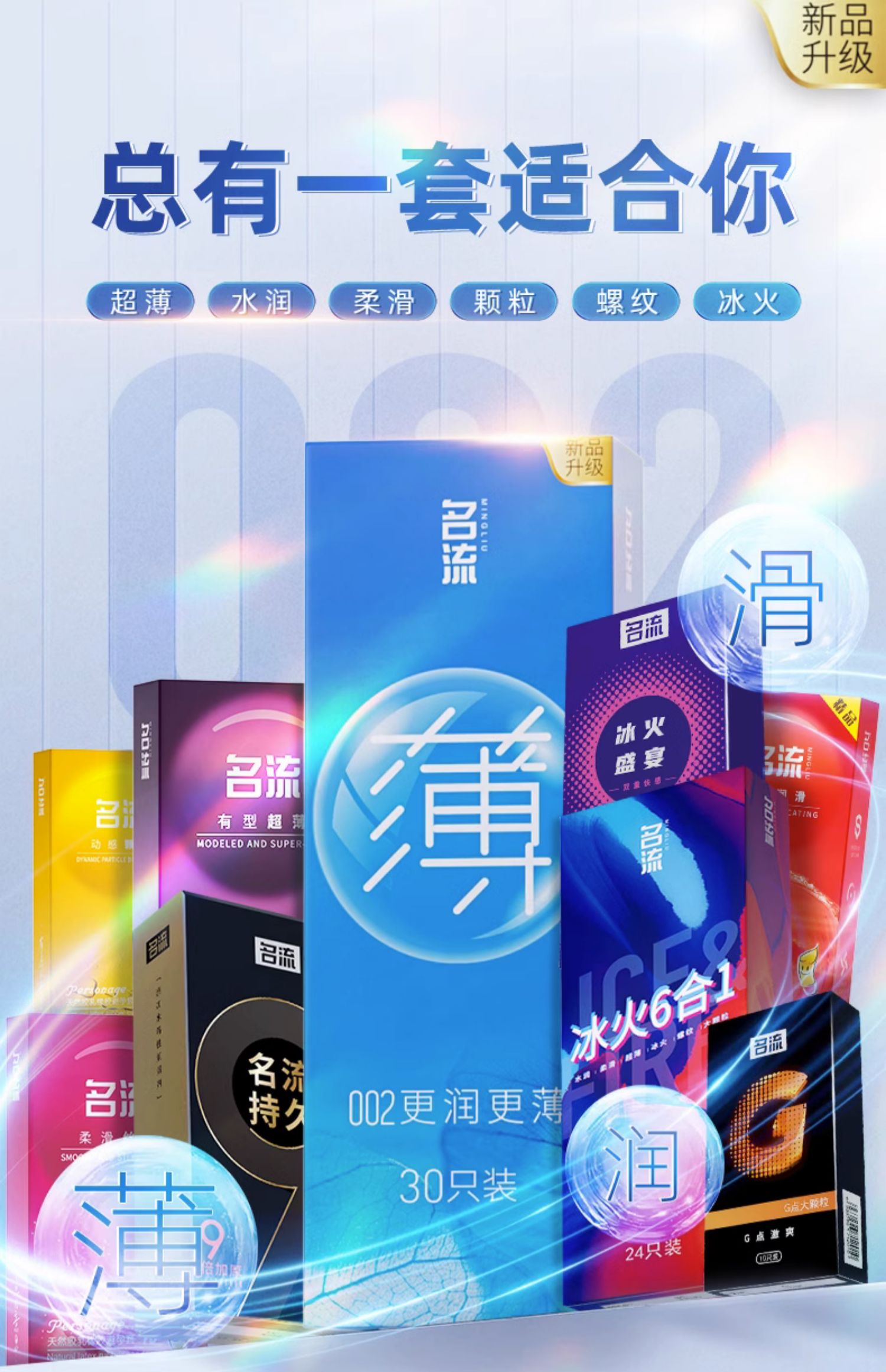 名流避孕套正品安全超薄旗艦店裸入003玻尿酸情趣安全套女001男用