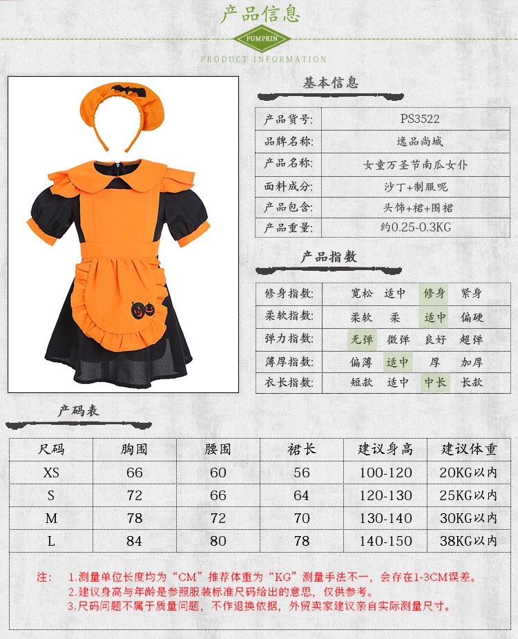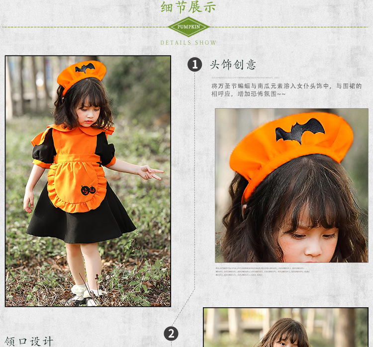 萬圣節兒童服裝女童Cosplay女巫裙子南瓜裝扮幼兒園女孩演出衣服