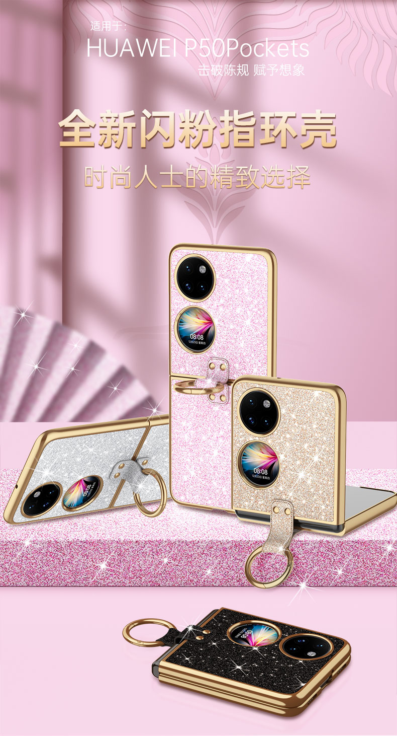 適用華為P50Pocket手機殼新款折疊屏保護套閃鉆奢華女款寶盒超薄pokets外殼高級指環支架限量版網紅時尚簡約