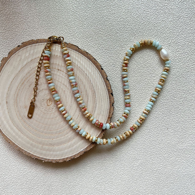 安小姐~彩色天然石頭項鏈民族風小眾設計感手鏈珍珠韓國爆款ins風