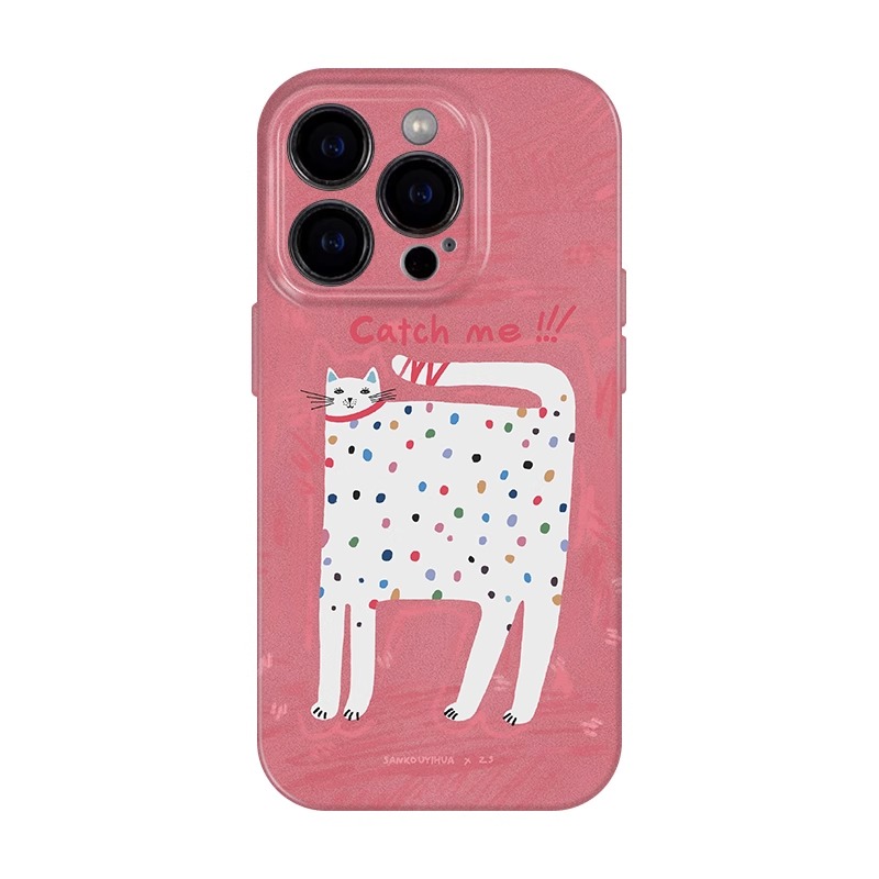 萌系斑點貓iphone14promax蘋果15plus手機殼12/13新款個性趣味菲林殼11女xr小眾xs可愛小清新防摔vivo保護套