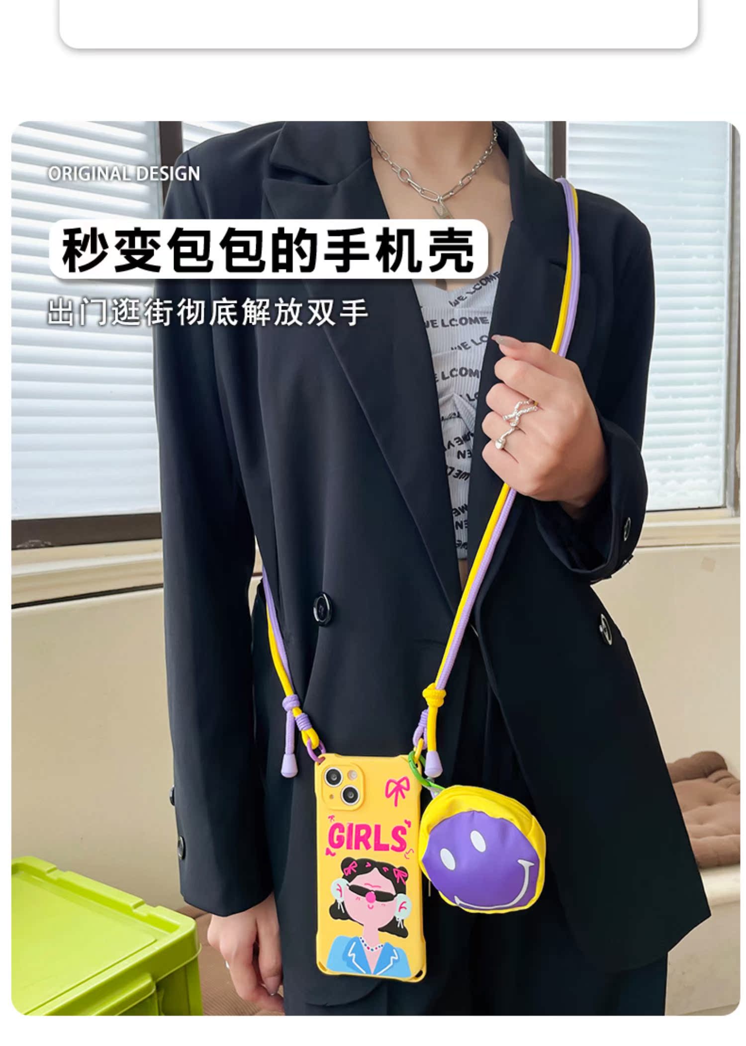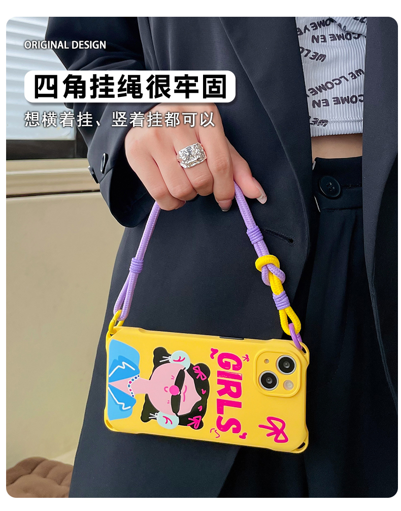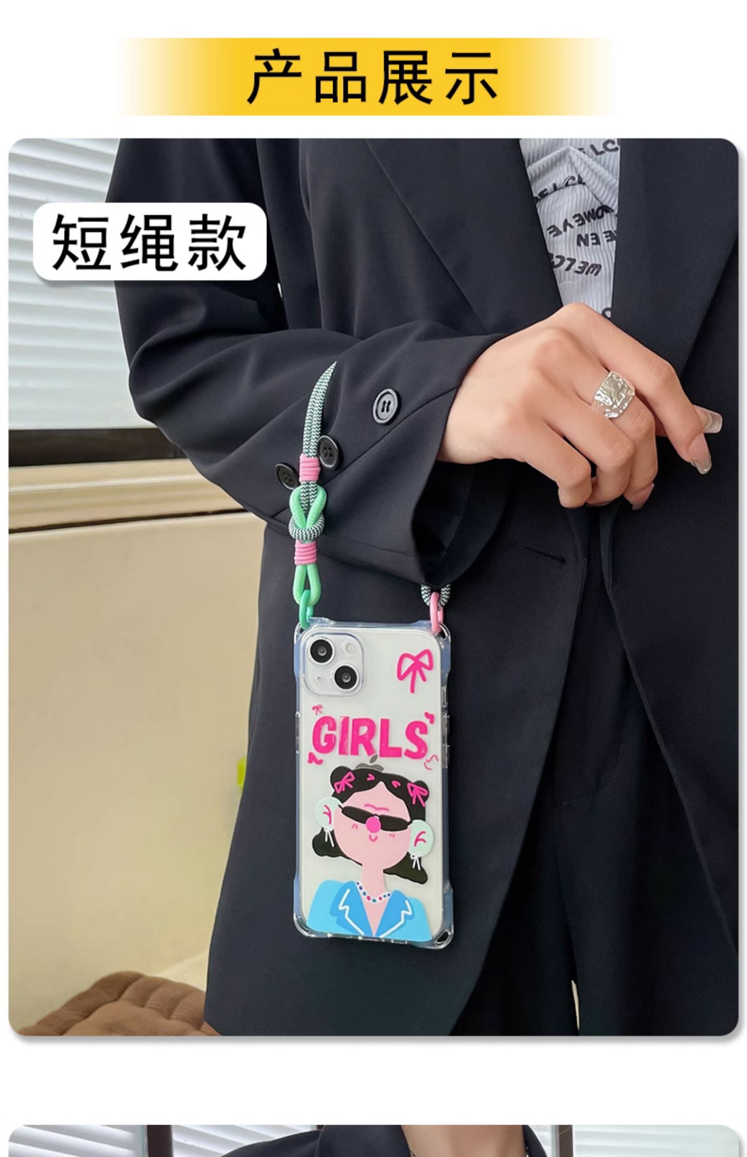 小女警蘋果15手機殼掛繩斜挎適用iphone14promax四角開孔硅膠14pro墨鏡支架13手腕手提11背帶斜跨12韓系小眾x