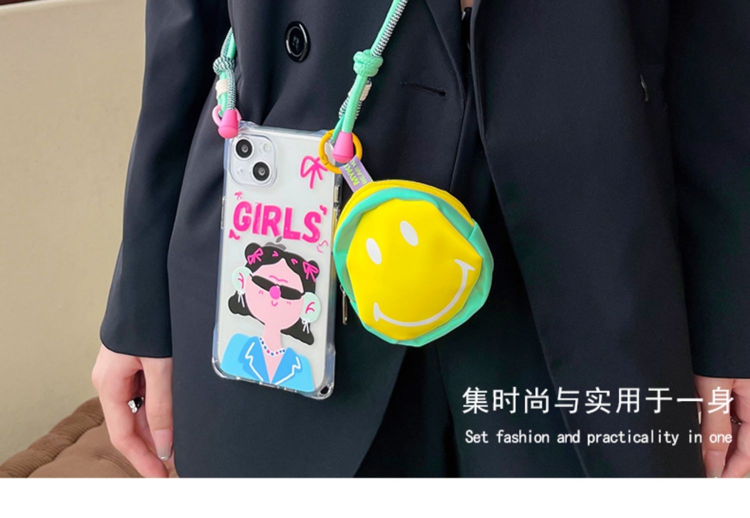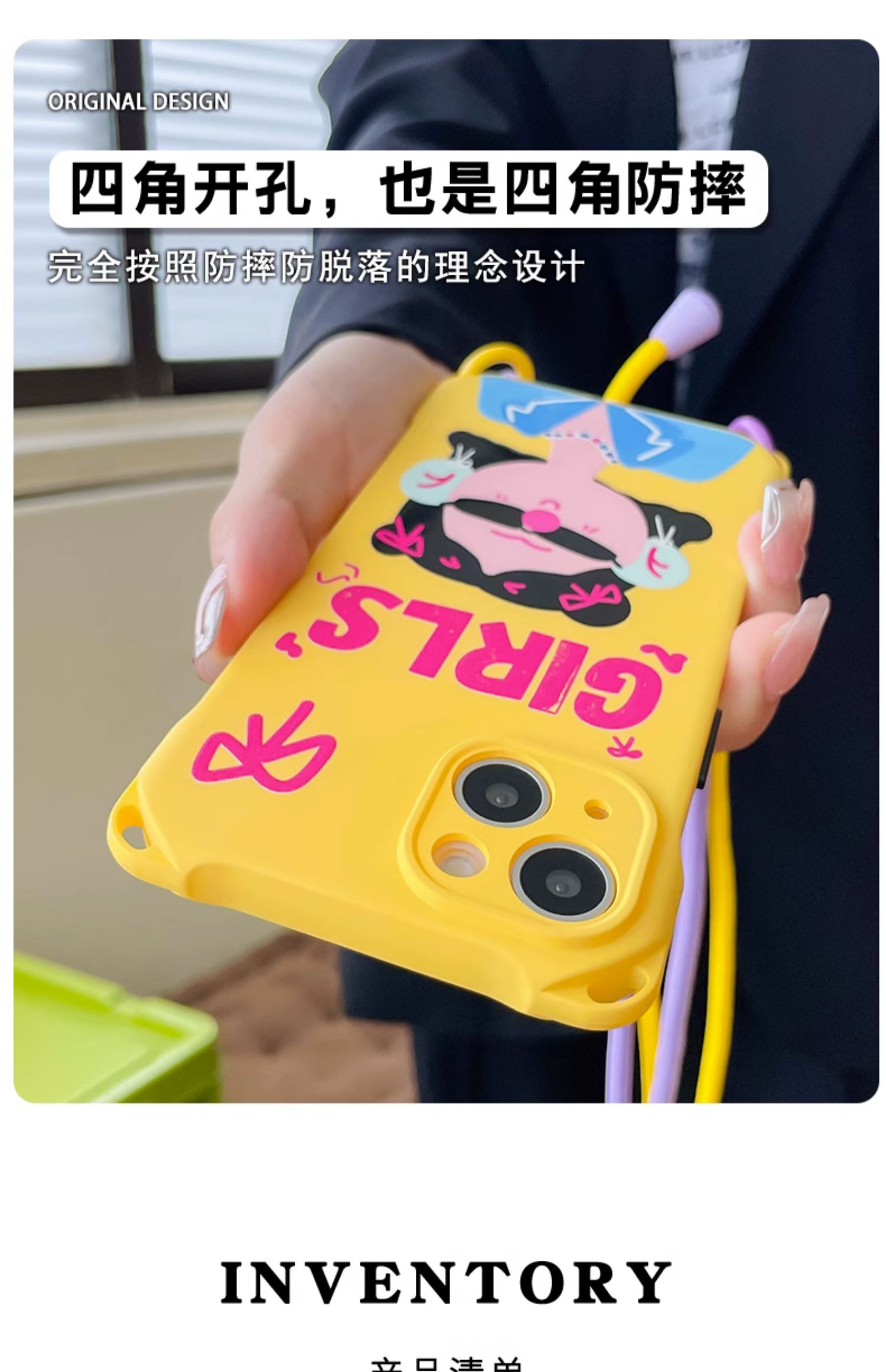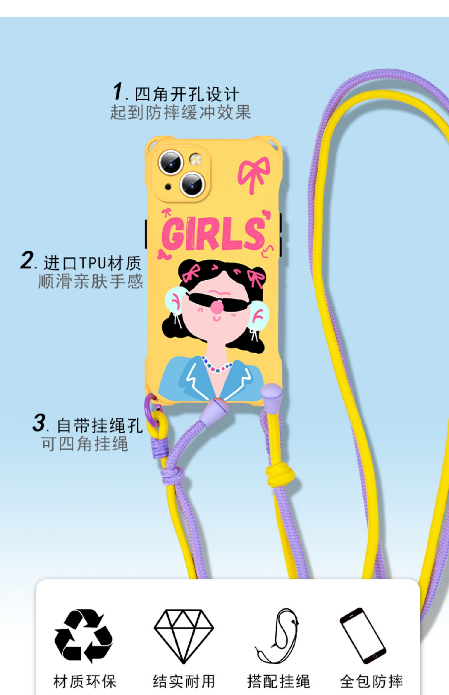 小女警蘋果15手機殼掛繩斜挎適用iphone14promax四角開孔硅膠14pro墨鏡支架13手腕手提11背帶斜跨12韓系小眾x