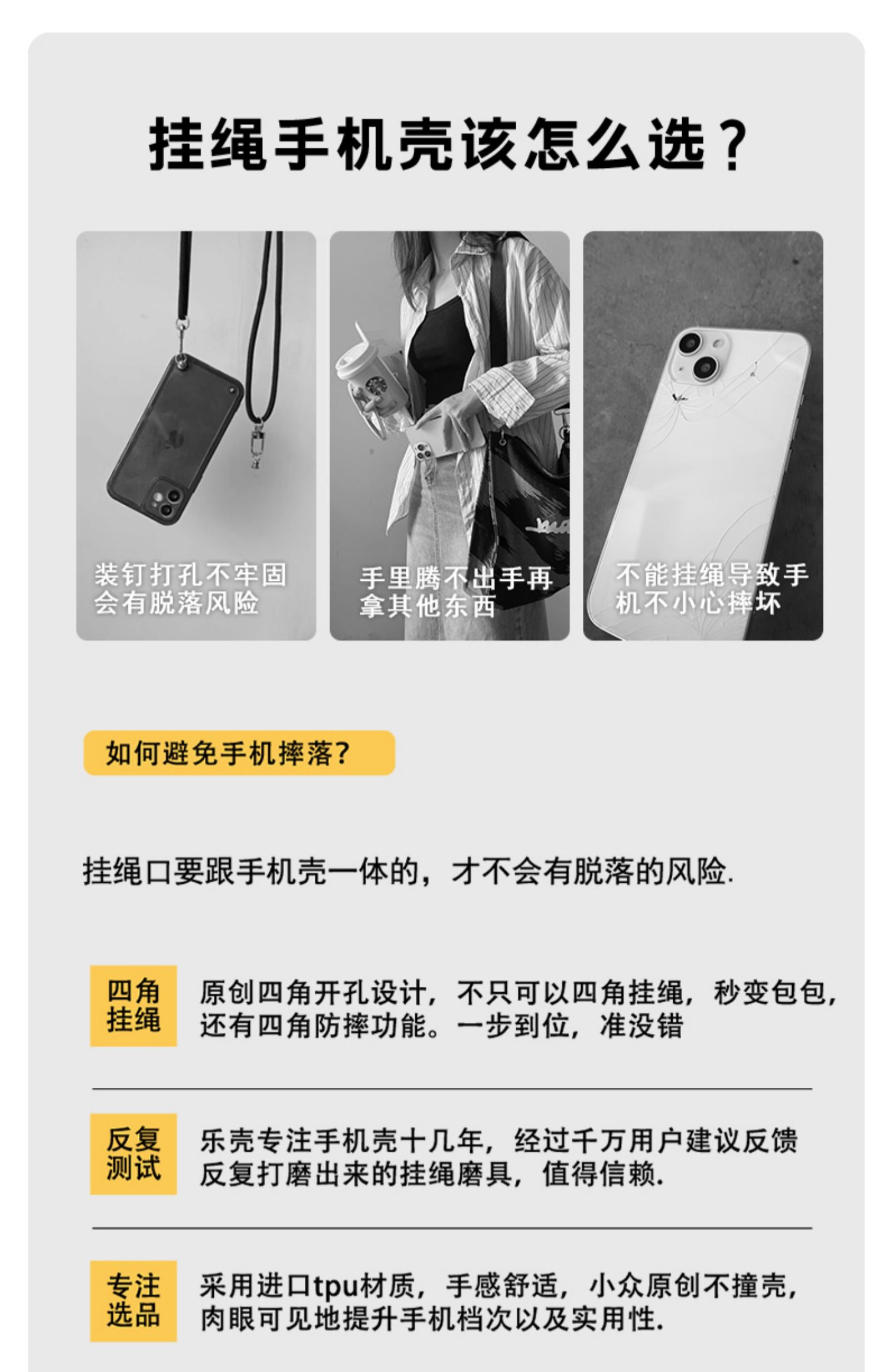 樂殼原創適用蘋果14斜挎掛繩手機殼
