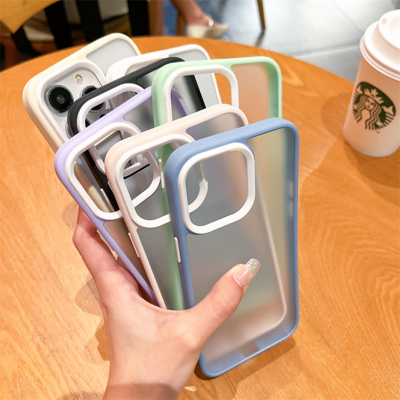 高級膚感蘋果15新款15plus手機殼iPhone13Promax亞克力12保護套11簡約男女xr全包Pro防摔14Pro磨砂13撞色邊框