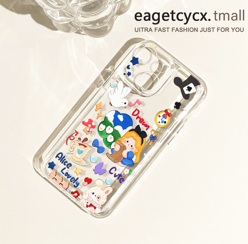 卡通涂鴉兔子貓咪適用蘋果14promax手機殼iPhone13透明12新款11pro個性1plus可愛5情侶xs少女xr全包x防摔硬殼