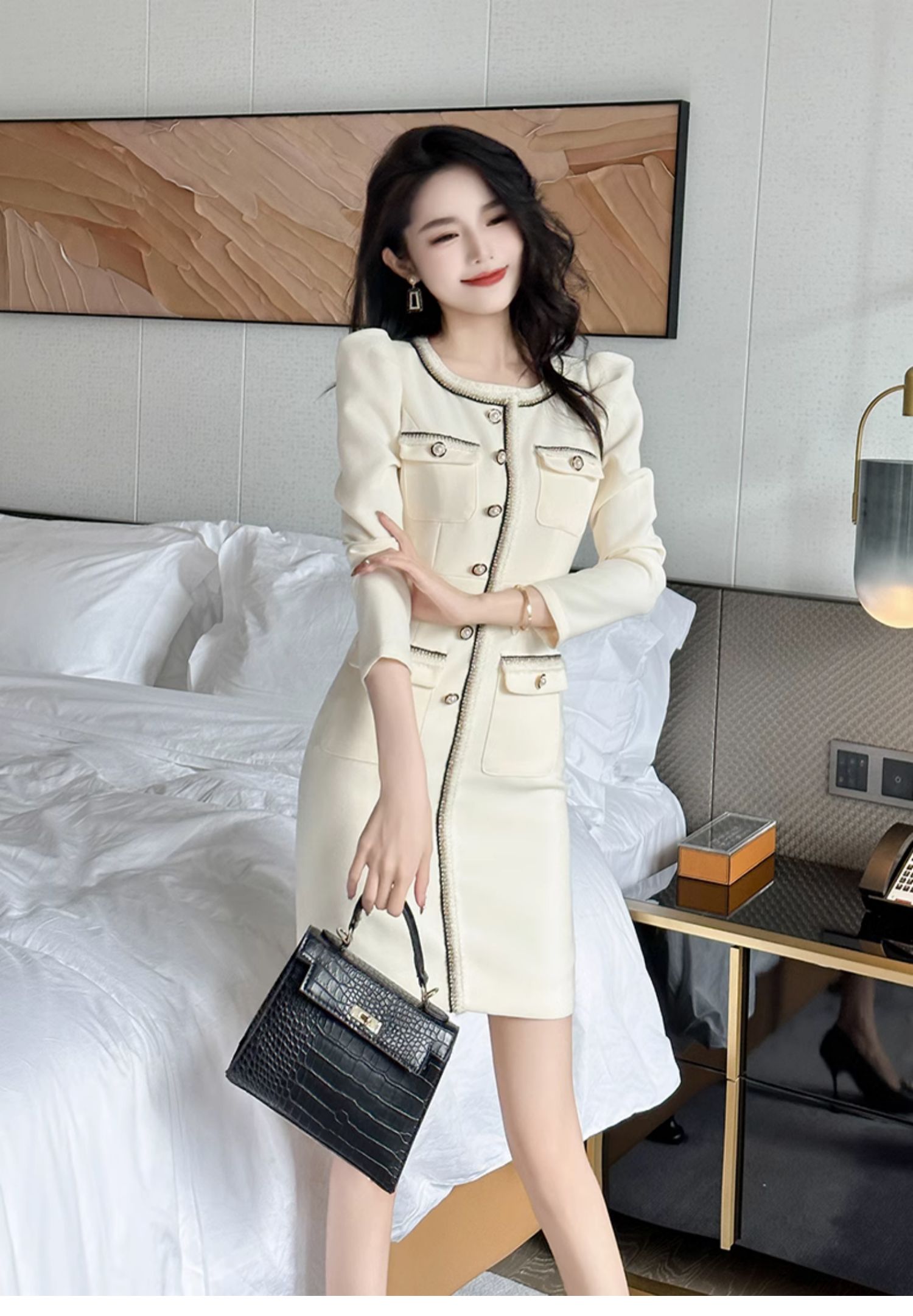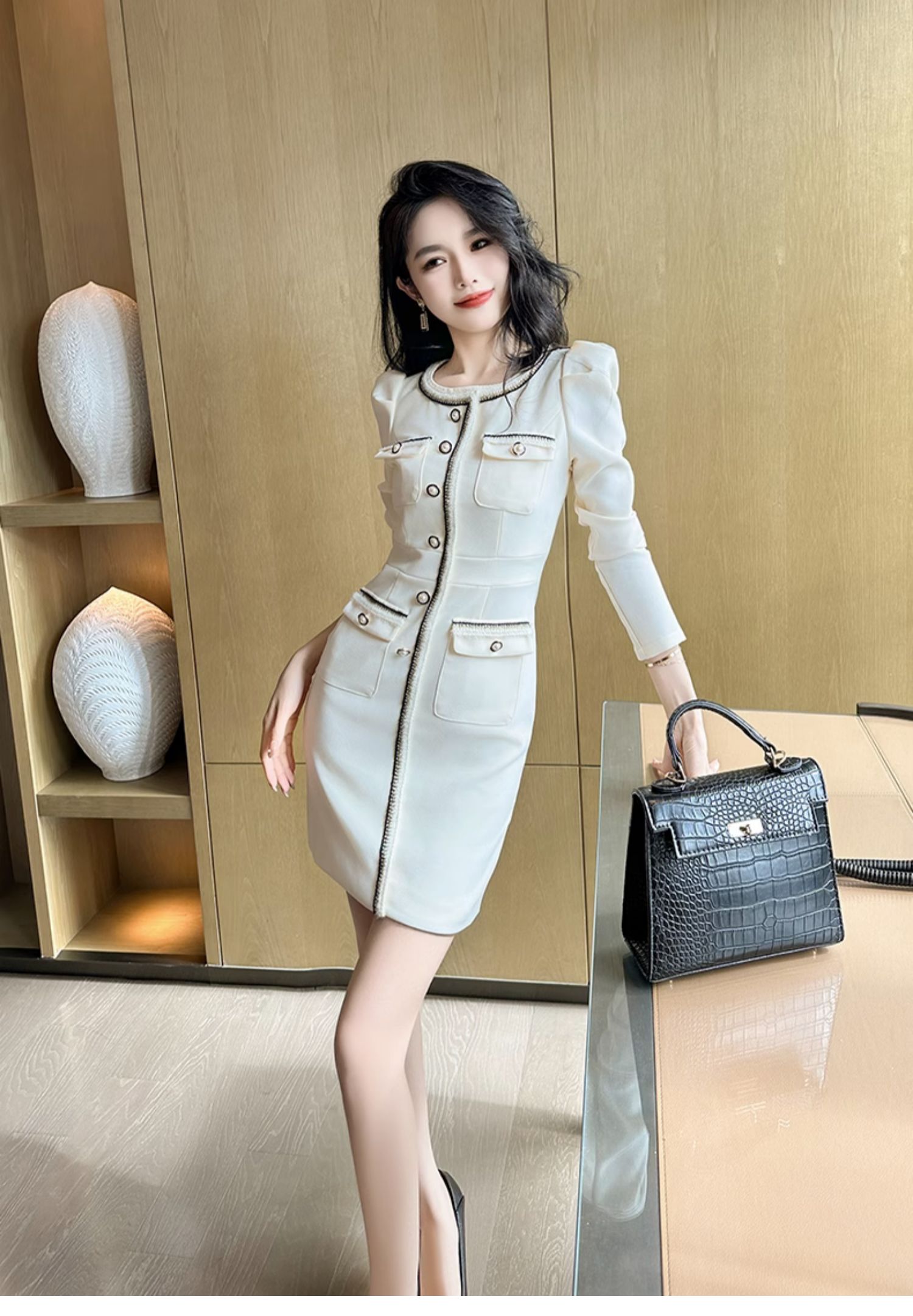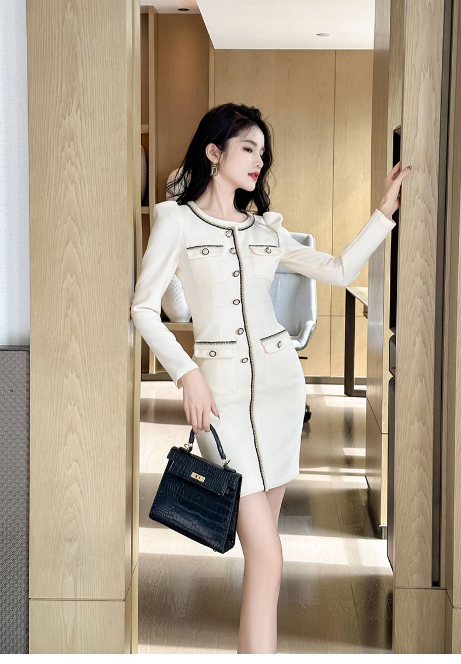 正式場合小香風連衣裙短款秋裝通勤職業高級感氣質名媛長袖包臀裙