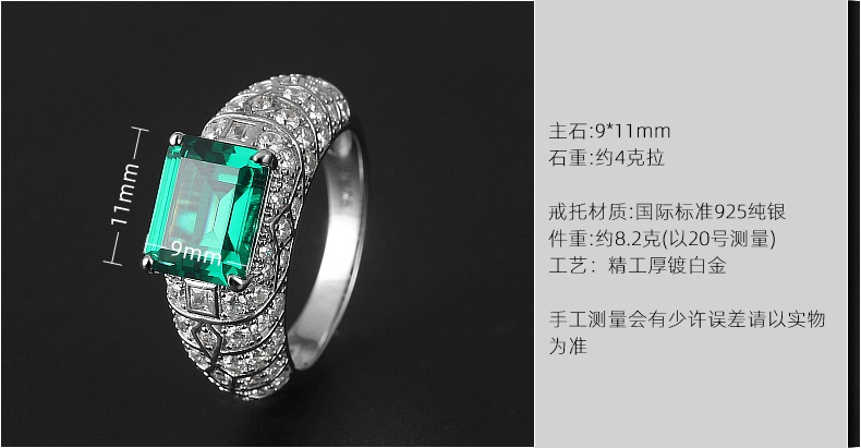 祖母綠色綠寶石純銀鍍白金輕奢指環