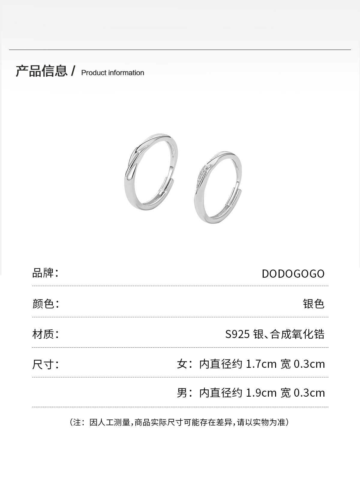 DODOGOGO烏斯莫比環素圈情侶戒指簡約氣質冷淡風百搭鋯石對戒一對