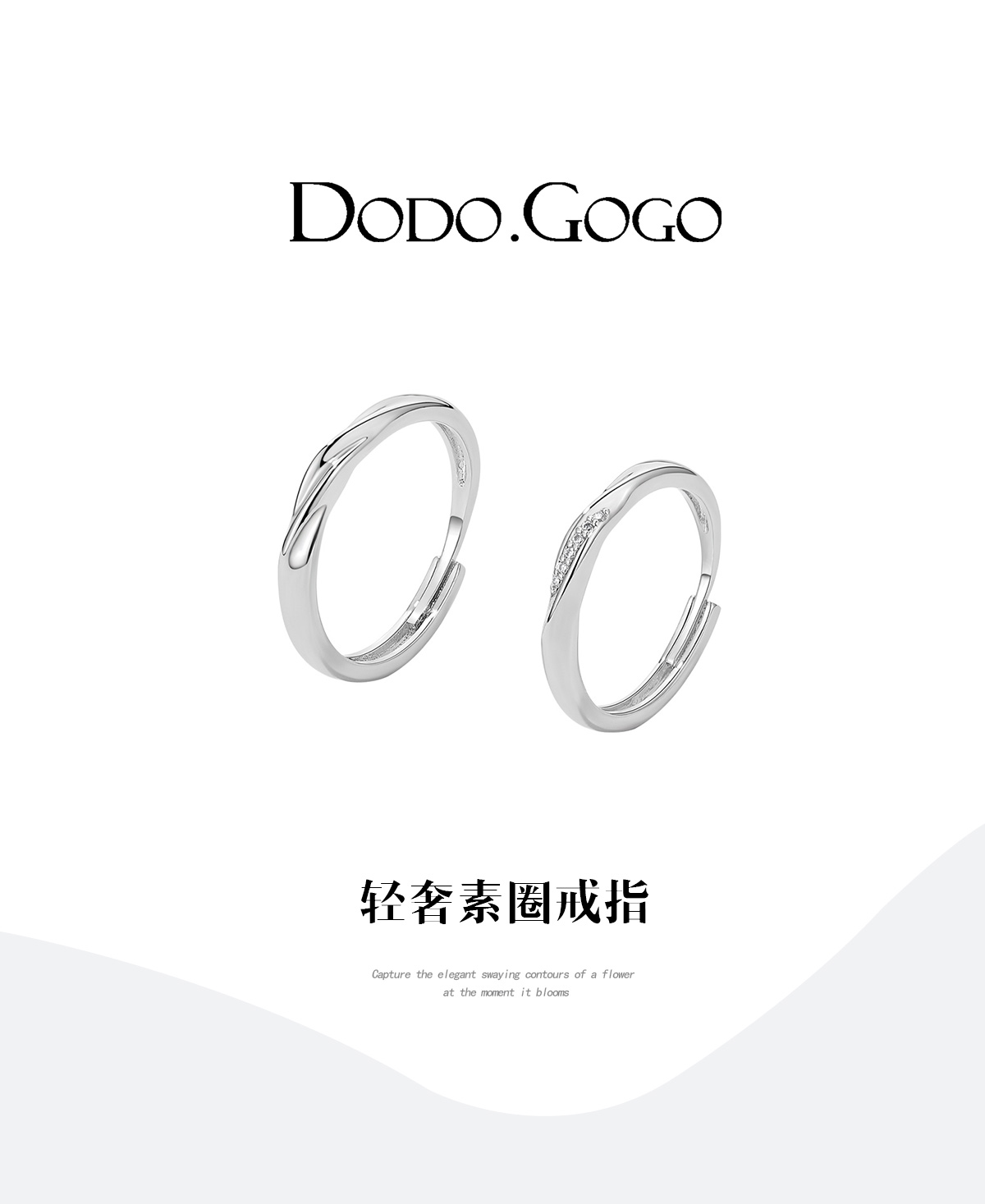 DODOGOGO簡約素圈戒指情侶純銀小眾設計感一對可調節指環男女對戒